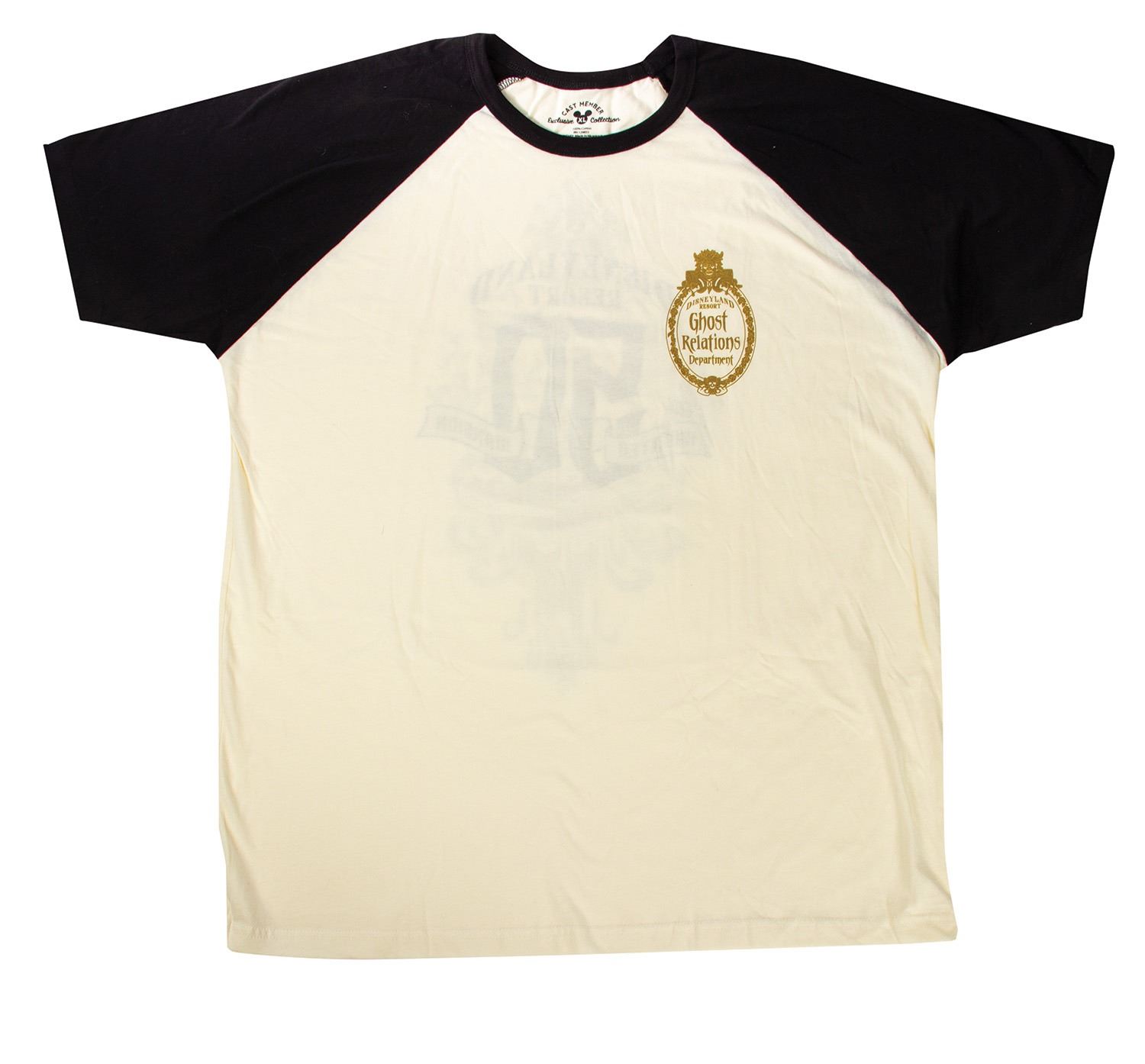 (Disneyland, 2019) A cast member exclusive t-shirt created for the 50th anniversary of the Haunted Mansion. The shirt reads "Disneyland Resort Ghost Relations Department" on the chest and the reverse features large imagery relating to this milestone anniversary. The shirt is an extra large and is in very fine unused condition with original tag attached.