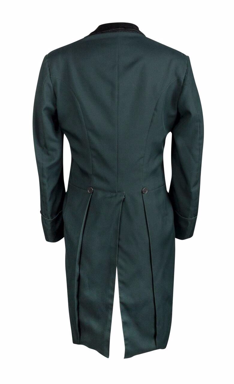 (Disneyland, 1960s/1970s) An extremely rare original cast member coat from the opening years of the "Haunted Mansion" attraction at Disneyland. This iconic style of coat for the "Haunted Mansion" was the original design used when the attraction first opened in 1969. This coat still retains its Disneyland wardrobe tag and is marked size 40R. This item is in very good condition with minor wear from use.