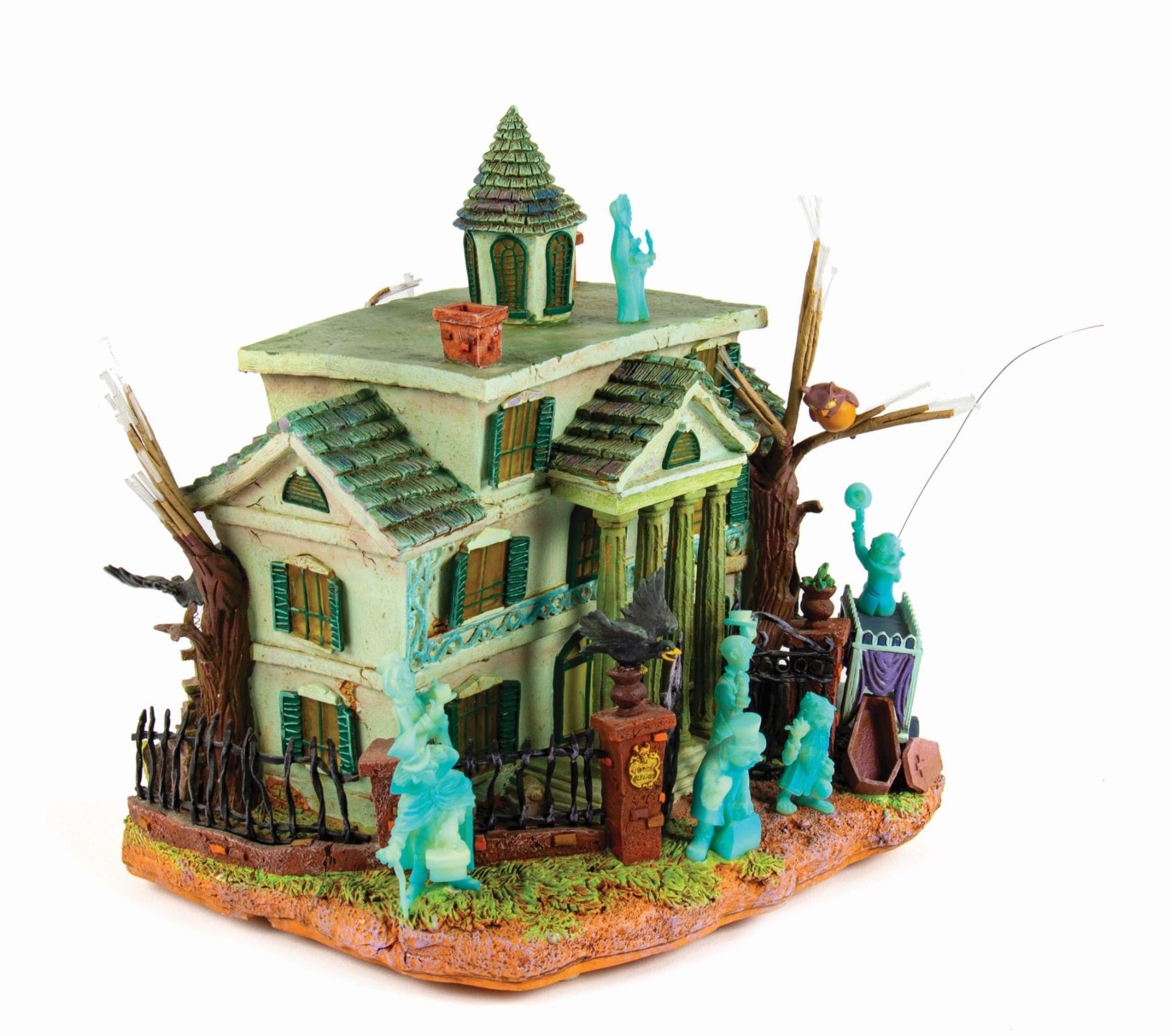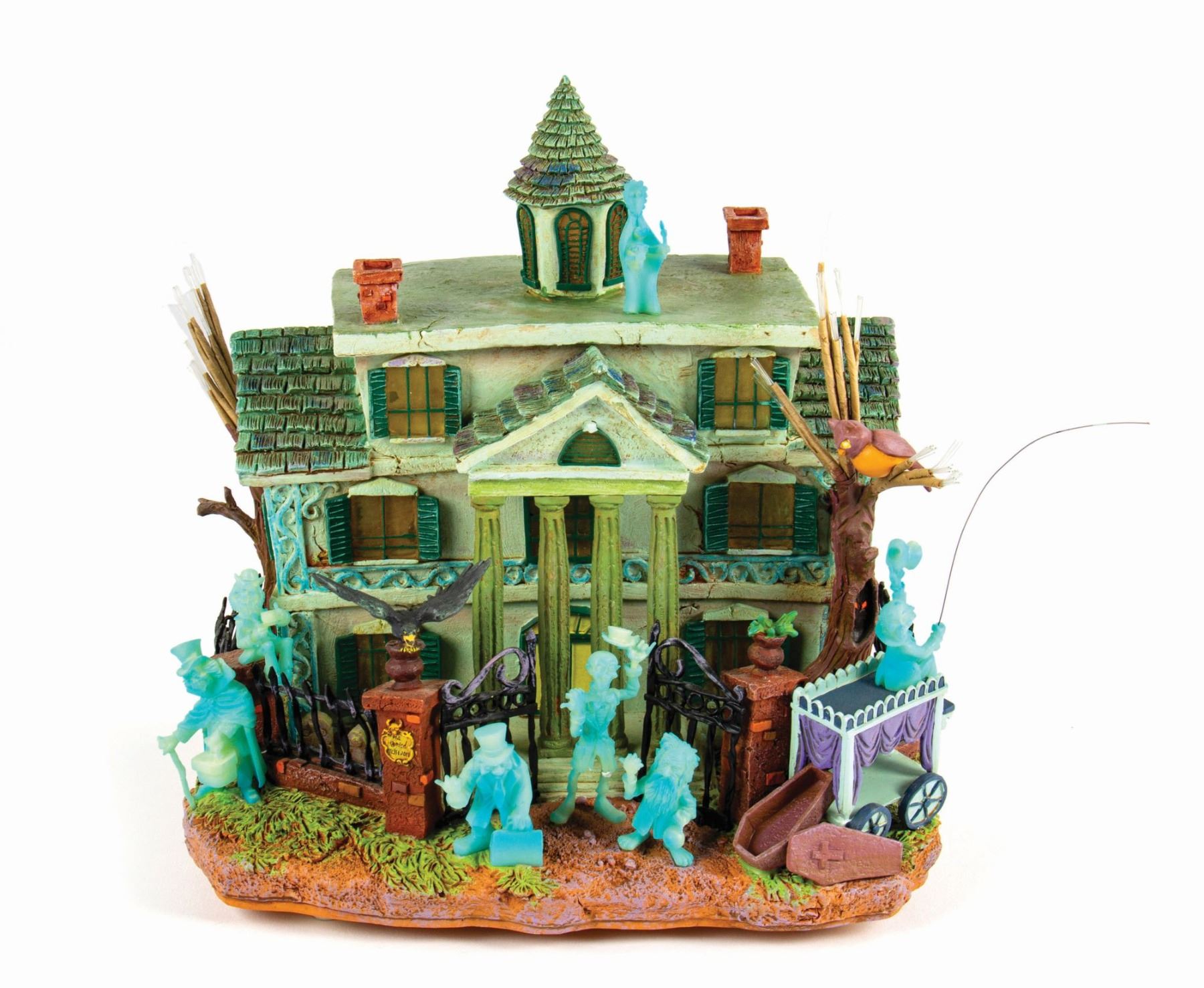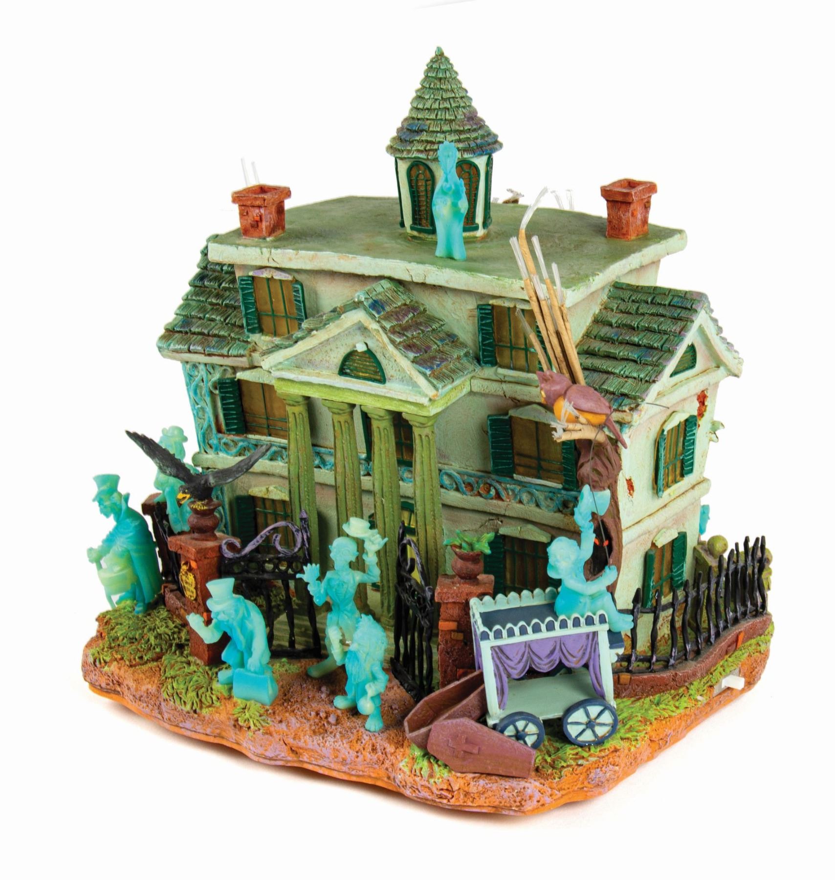 (Disneyland, 2002) A light-up fiber optic model of the Haunted Mansion. This model has characters and elements from the attraction on every side and is a charming depiction of this memorable building. The model measures approximately 9" tall and is in very good condition.