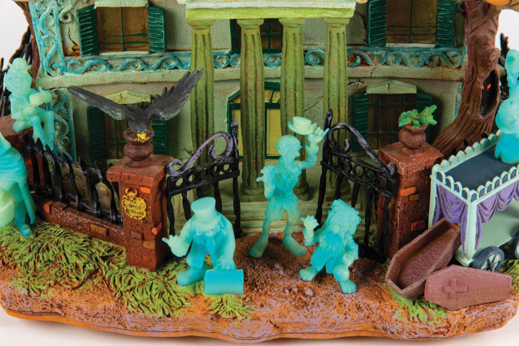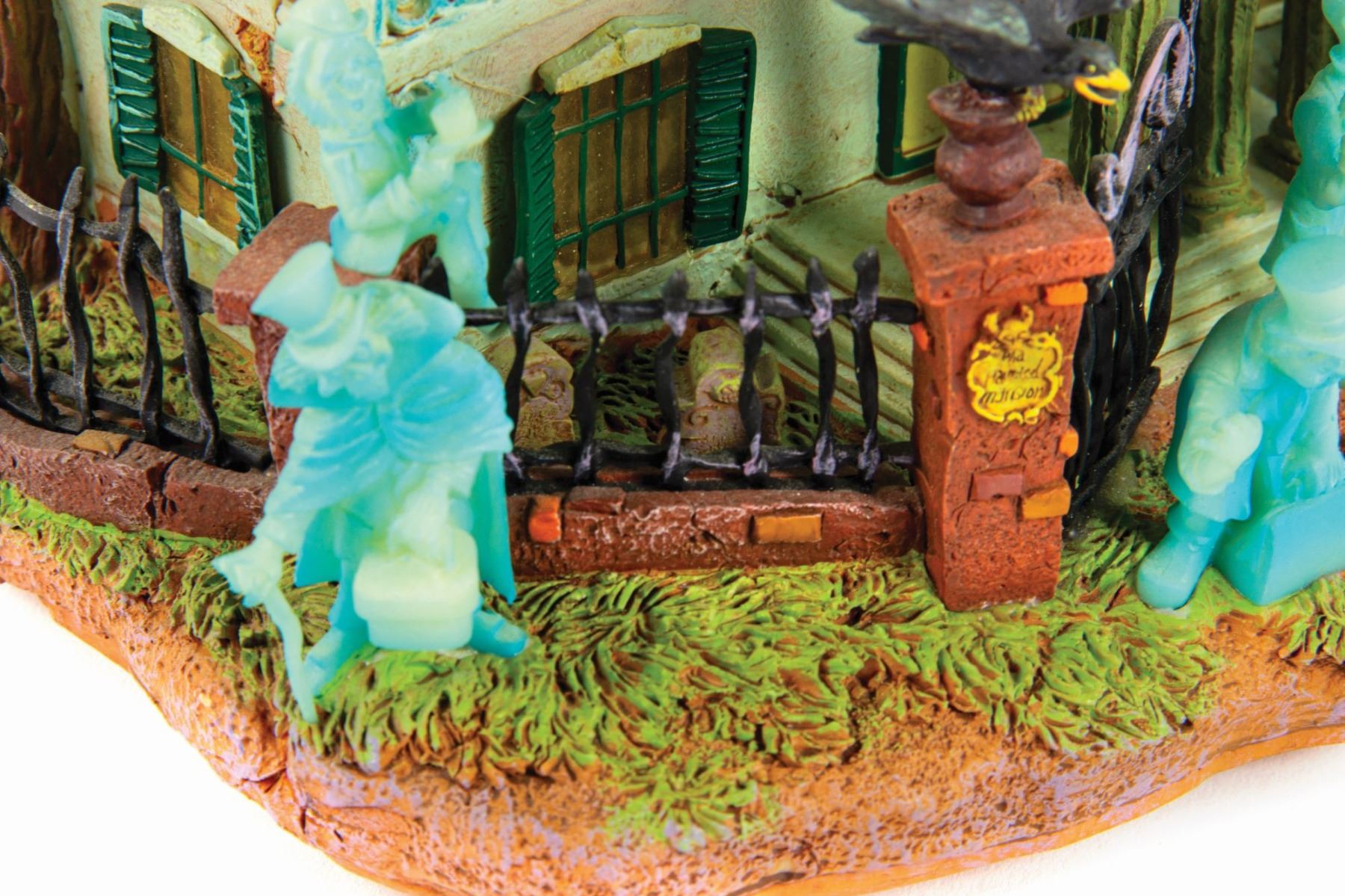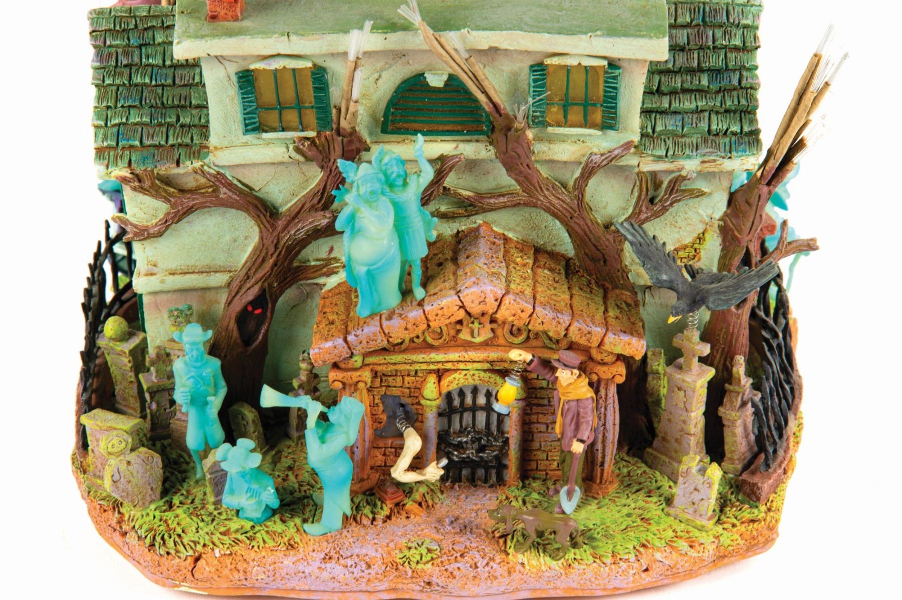 (Disneyland, 2002) A light-up fiber optic model of the Haunted Mansion. This model has characters and elements from the attraction on every side and is a charming depiction of this memorable building. The model measures approximately 9" tall and is in very good condition.