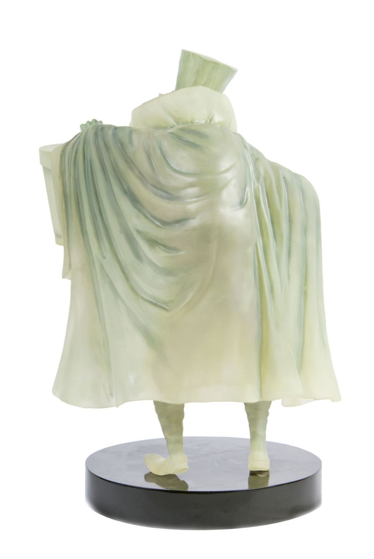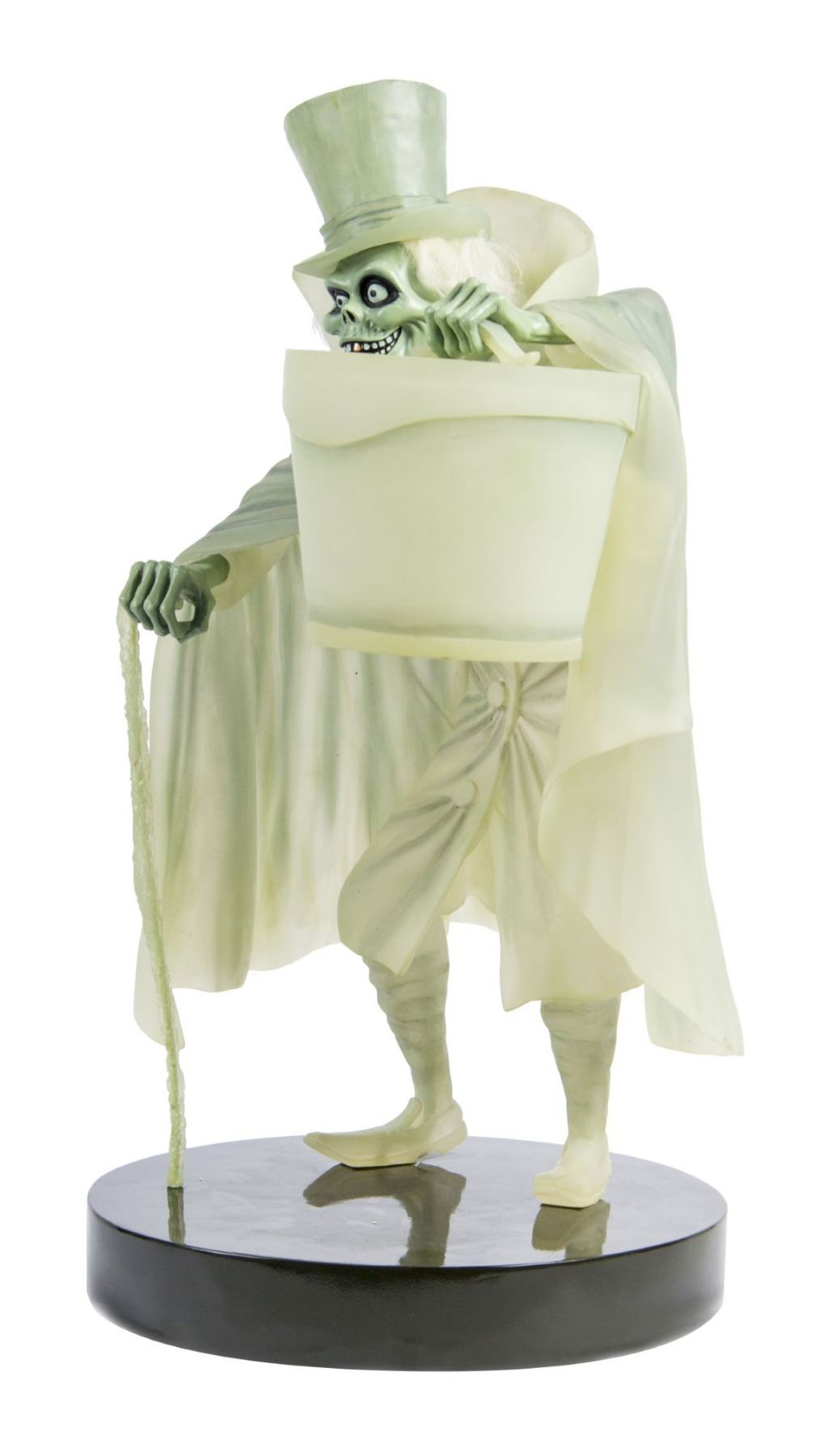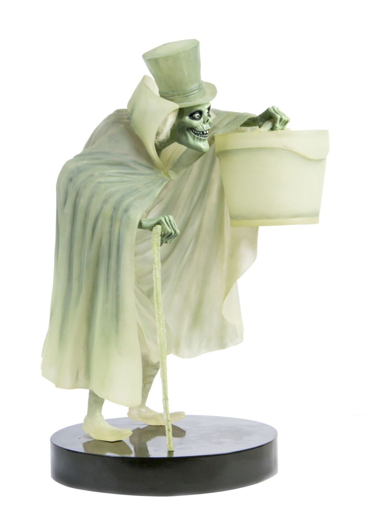 (Disneyland, 2005) A very rare light-up "Big Fig" created by Kevin Kidney and Jody Daily for the 50th anniversary of Disneyland. Accomplished in resin and metal with faux hair, this piece replicates the infamous Hatbox Ghost character from the "Haunted Mansion" attraction. Battery operated lights give the Hatbox Ghost's eyes a ghoulish glow, with a convenient on-off switch hidden on the side of the head. This figure measures an astounding 24" tall and is in good condition with some wear throughout, including a repaired break in the pinky-finger.