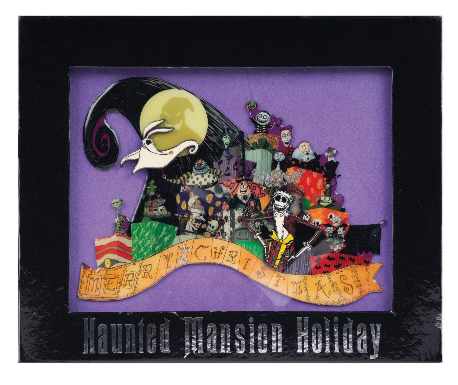 (Walt Disney Imagineering, 2008) An extremely rare Haunted Mansion Holiday Jumbo Pin. The Walt Disney Imagineering exclusive pin was limited to an edition of 300, and measures 4.5"x6". The pin is in fine condition pin and comes its original box.