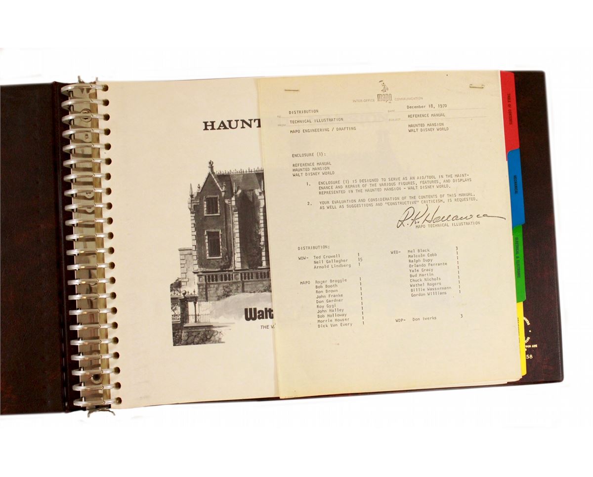 (Walt Disney World, 1969) Extremely rare Maintenance manual for the Haunted Mansion attraction at Walt Disney World. The manual features instructions and graphics on the operation and behind the scenes workings of the entire ride. An amazing manual that reveals the secrets of one of the most popular attractions at the park. Measuring 11.25 x 15.75 x 2 in.