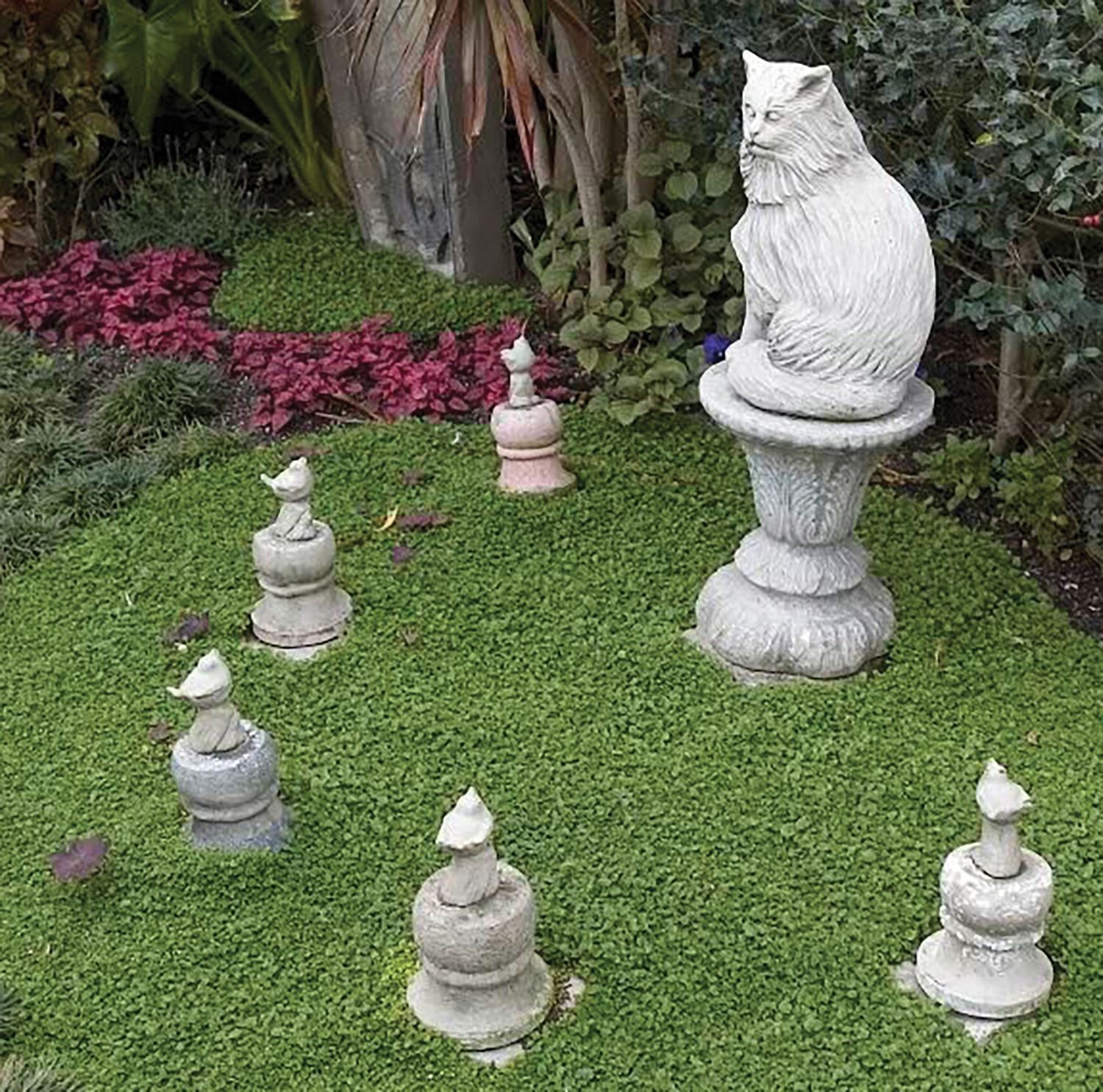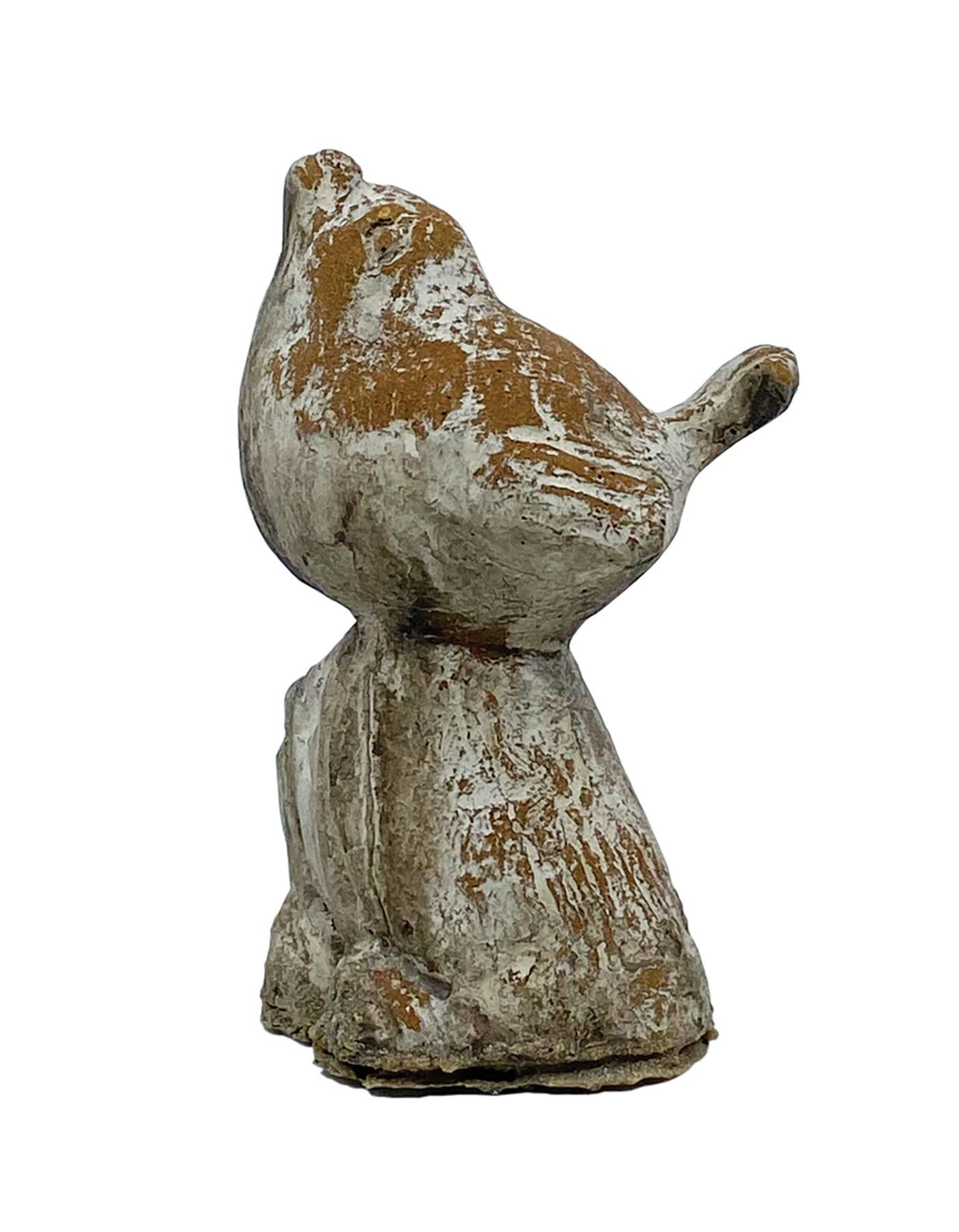 (Disneyland, c.1993) An original prop bird used on a grave marker in front of the Haunted Mansion. This prop was displayed as part of the popular pet cemetery area of the line queue, as several of these bird grave markers circle the larger cat grave marker. Composed of painted faux stone, the prop measures 4.25" tall and is in good overall condition, having been intentionally distressed. There is some expected surface wear throughout from use.
