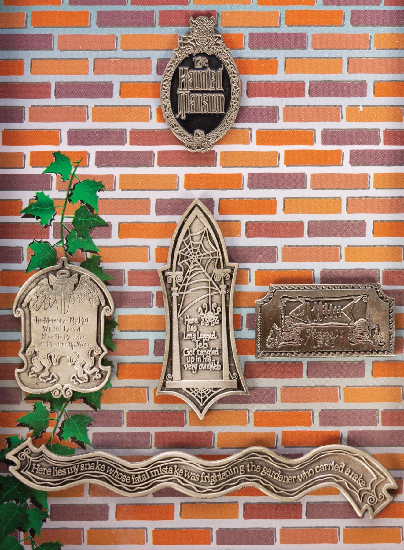 (Disneyland, 2009) A boxed set of (5) pins inspired by the Haunted Mansion attraction. This set of embossed metal pins is themed after the attraction's Pet Cemetery and was released in an edition of only 5000. The accompanying display box recreates the iconic Mansion gates which open to reveal the elegant pins. The box measures 6.5"x7.25" and is in very fine condition with minor wear.