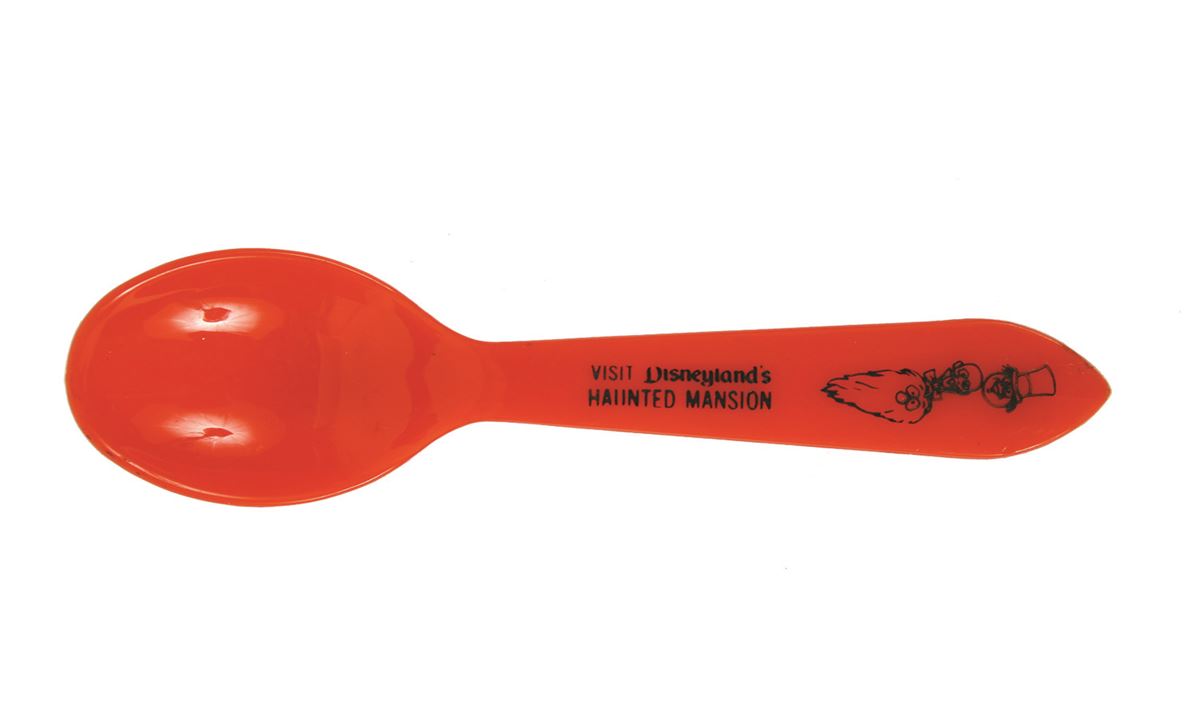 (Disneyland, 1969) A very hard-to-find plastic spoon given away as part of the “I Scream” promotion at Carnation during the opening of The Haunted Mansion. Measures 5” long and is in good used condition.
