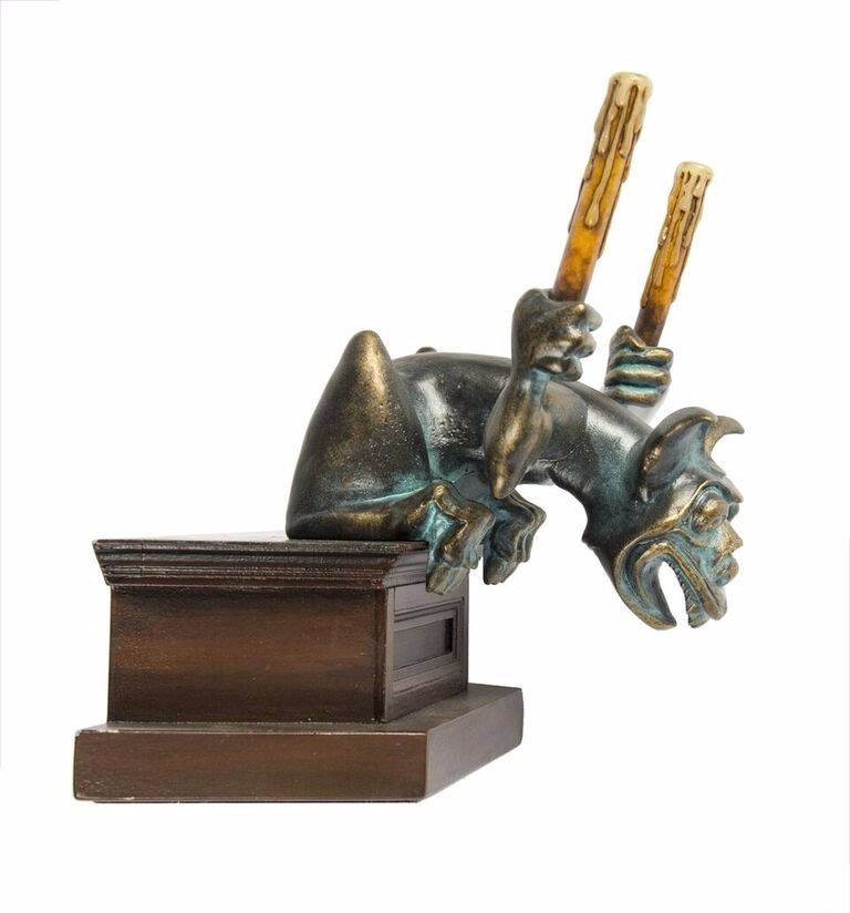 (Disneyland, 2000s) A reproduction custom-made figure of the gargoyle from the "Haunted Mansion" attraction at Disneyland. This figure was inspired by the gargoyles in the iconic stretching room, and is created in painted resin. This item measures 6"x7" and 7.5" tall, and is in very good condition.