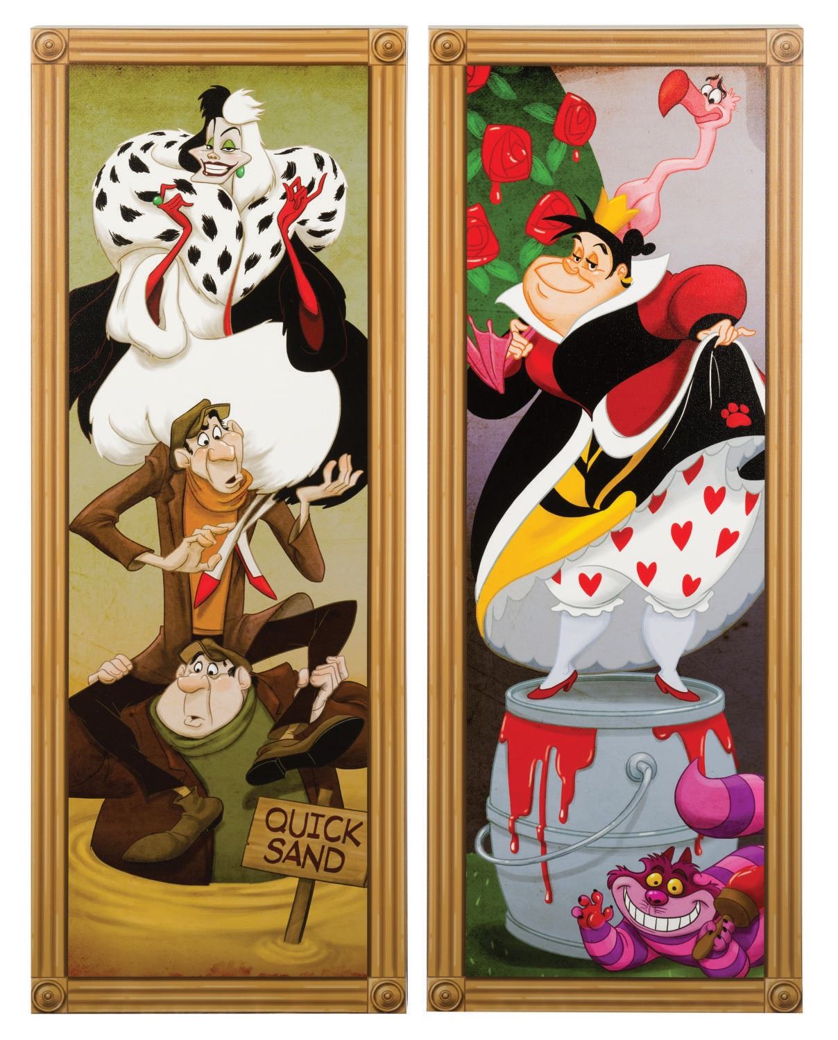 (Disney, 2017) A set of (4) Haunted Mansion Disney Villains Stretching Portrait prints by Disney Print on Demand. The Print on Demand kiosks continue to serve as a popular souvenir location for Guest of both WonderGround Gallery and Disneyana at Disneyland. Measuring 30"x18.75", each print is in fine as-new condition.
