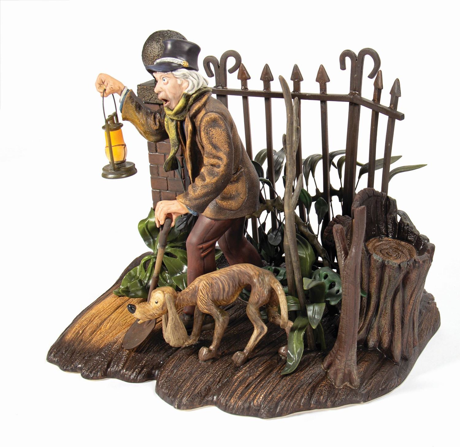 (Walt Disney World, 2011) A limited edition porcelain figure created by artist Ruben Procopio for the Walt Disney Classics Collection line. Offered during the "Room for One More" Haunted Mansion event at the Magic Kingdom, this beautifully crafted figure is titled "Caretaker and Dog" and is number 144/250. Measuring 11"x9" and 9.5" tall, the figure is in very fine condition and comes in its original packaging with numbered COA.