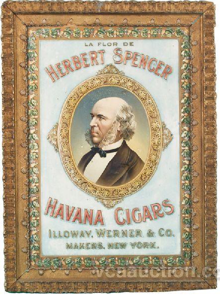 Havana Cigars Embossed Tin Sign, w/ picture of Herbert Spencer, in original frame - 17" x 24"