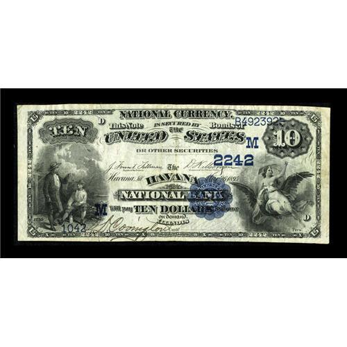 <B>Havana, IL</B></I> - $10 1882 Date Back Fr. 542 <B>The Havana NB</B></I> Ch. # (M)2242<BR>A very tough early note from this one bank town. This is a common enough bank in small size, but large notes from here are just plain rare, with this one of only four of all types listed in the census. <B>Very Fine,</B></I> ex-Walter Herget collection.<BR><I>From The Lincoln Collection</B></I><BR><BR><b>Shipping:</b> Coins & Currency (<a target="_blank" href="http://www.heritageauctions.com/common/shipping.php">view shipping information</a>)