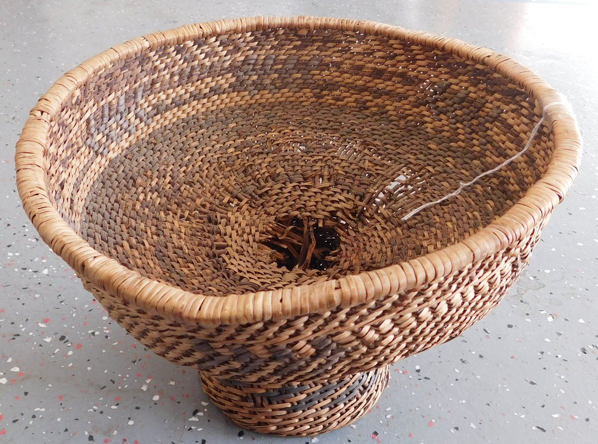 Havasupai Basket, circa 1890s. Made of willow, the item is 11" x 12" x 8". Grand Canyon, Arizona. Pedestal basket. Condition: Some minor damage, see images. Shipping: $27.00 w/insurance and signature, due to size.