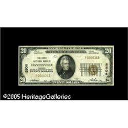<B>Havensville, KS</B></I> - $20 1929 Ty. 1 <B>The First NB</B></I> Ch. # 5506<BR>This <B>Fine-Very Fine</B></I> example is from one of the only 125 sheets of this type and denomination originally printed from here and affords the vanquished underbidders on the previous lot one final chance to own one of the three known surviving examples of this type and denomination from here. Lot:16873