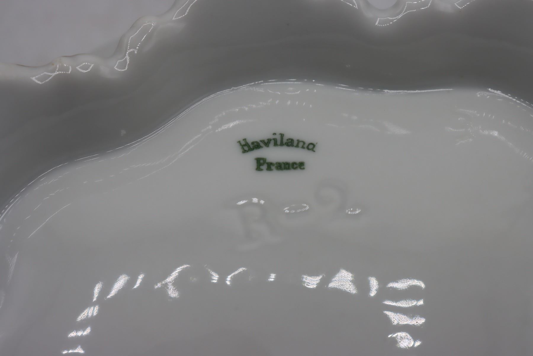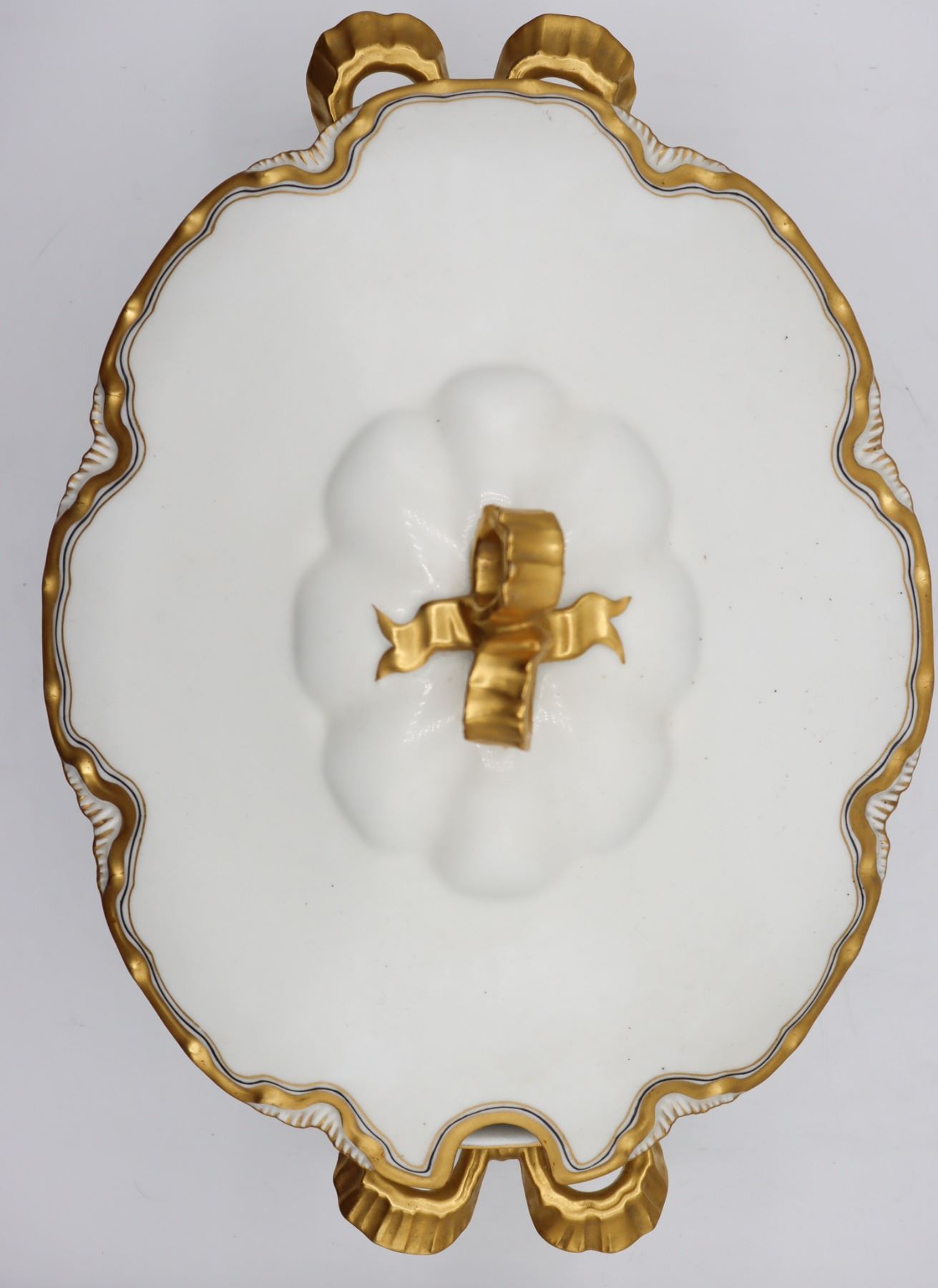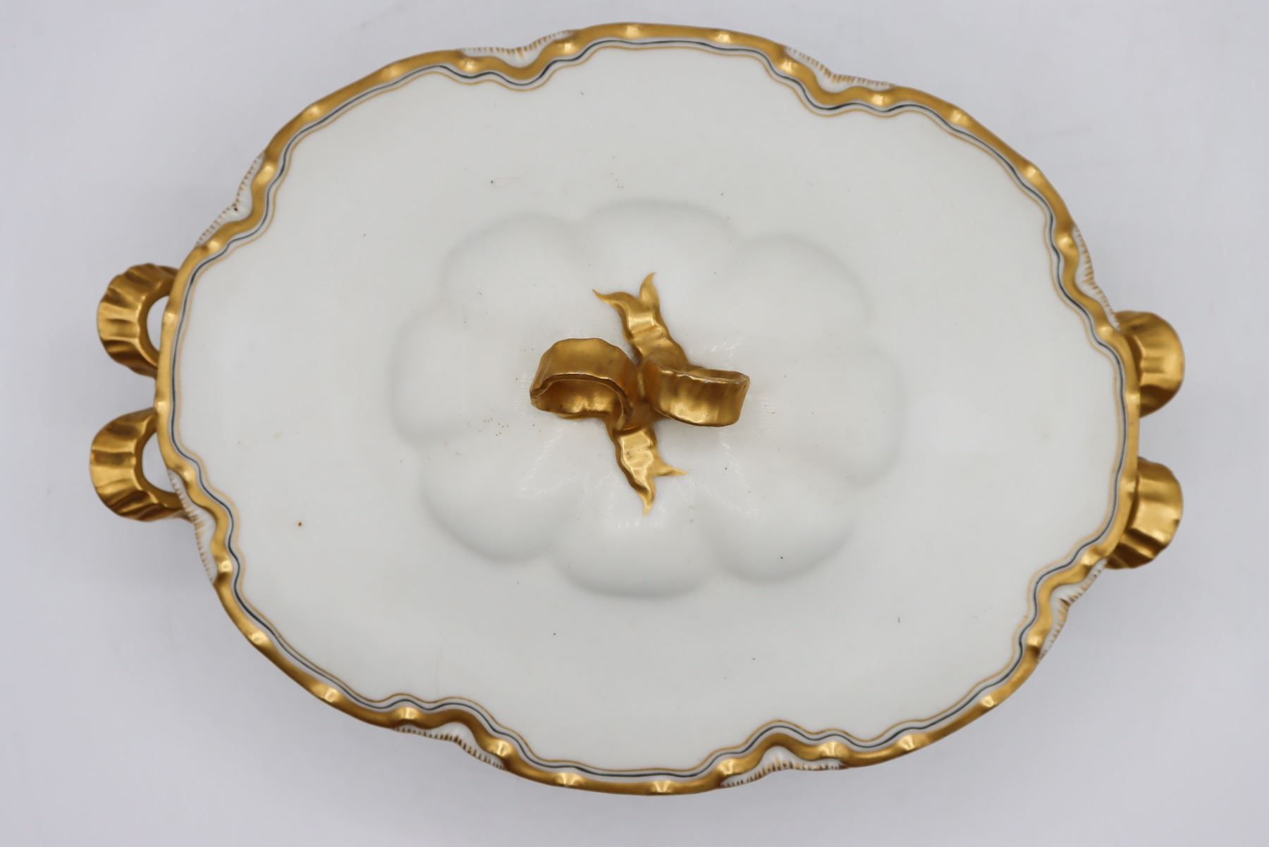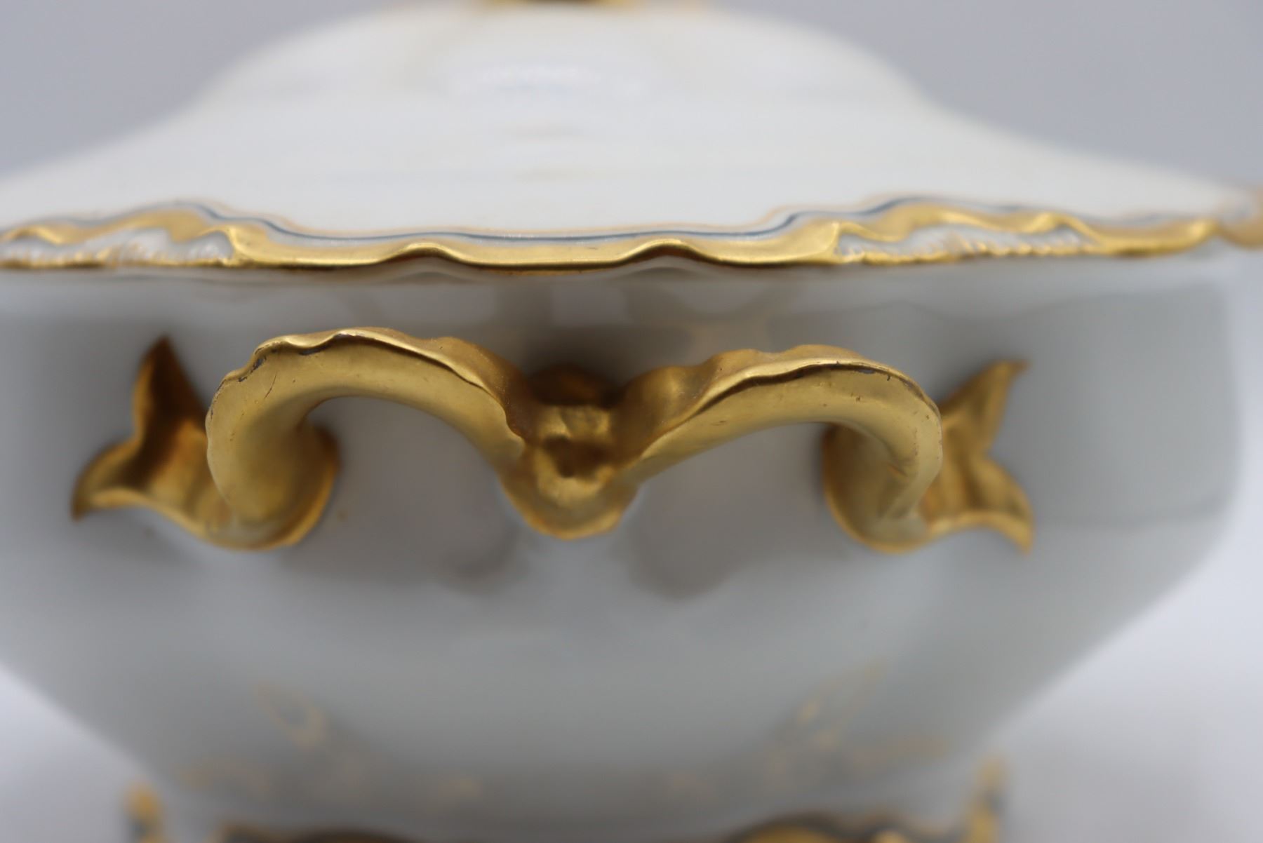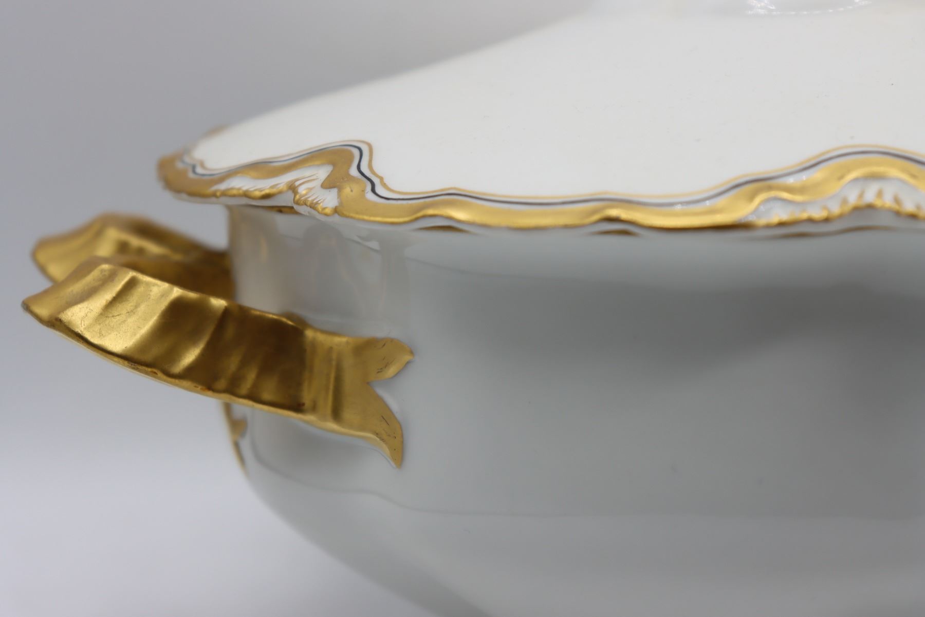 Haviland France, marked on the underside. Porcelain tureen with gilt handles. Commensurate with age.