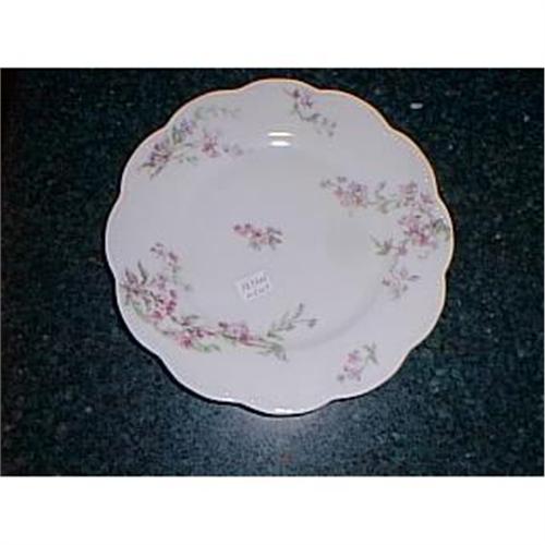 Set of 12 salad plates in Schleiger 249 by Haviland & Company, Limoges, France. Scalloped white porcelain with pink & blue sprays of flowers. Very dainty pattern. Excellent condition.