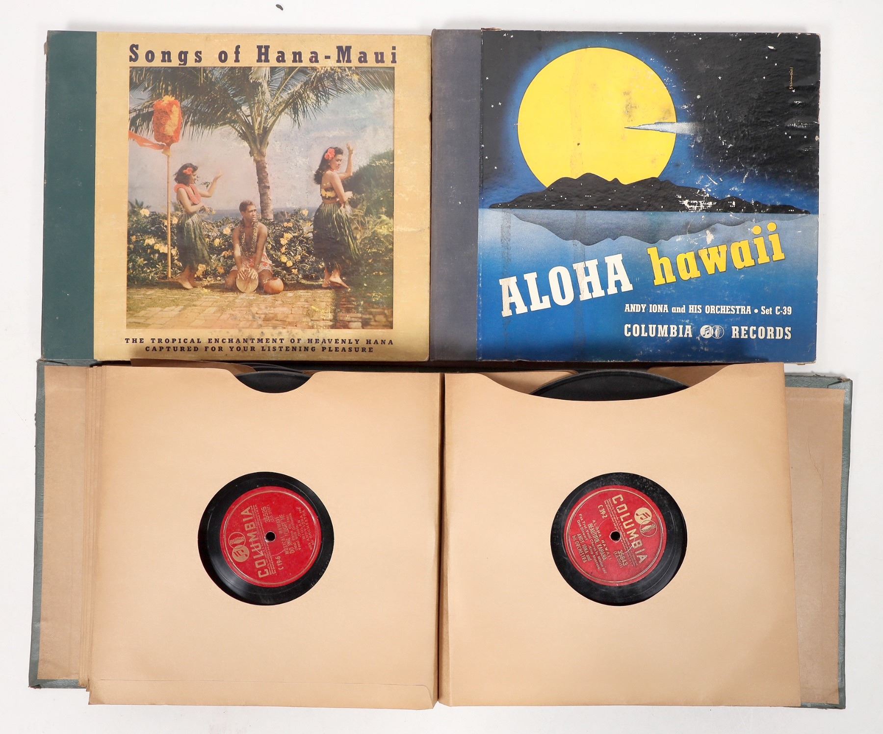 Songs of Hana-Maui, 4 discs, mostly better condition. Aloha Hawaii, Andy Iona and his orchestra, generally better condition. 7 assorted discs in a binder, generally better condition. Sold as is.