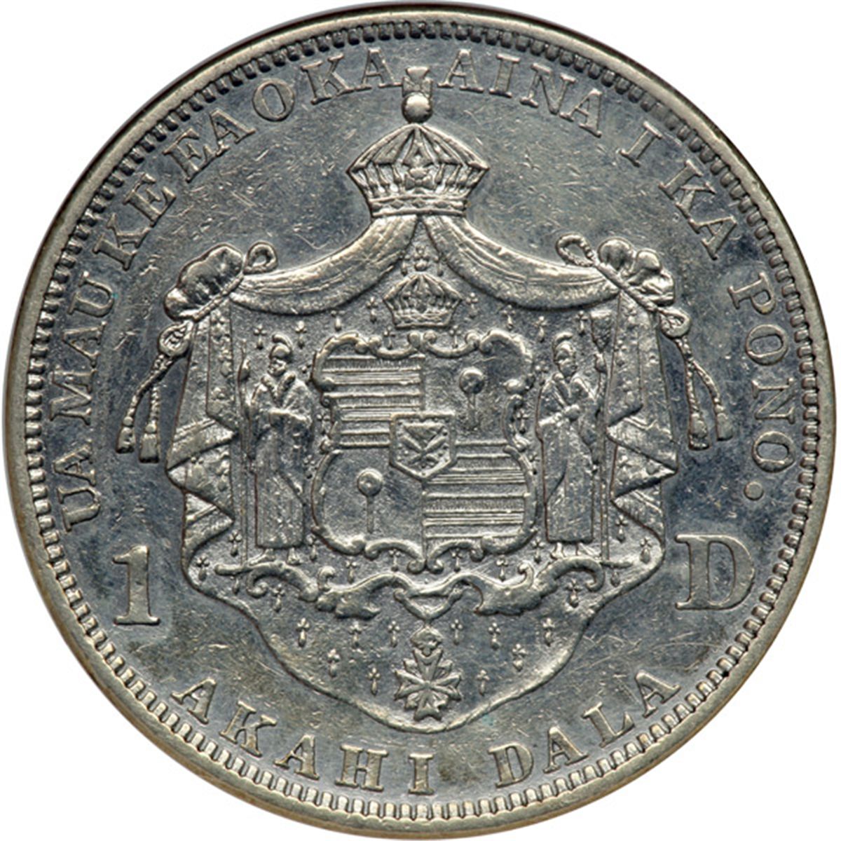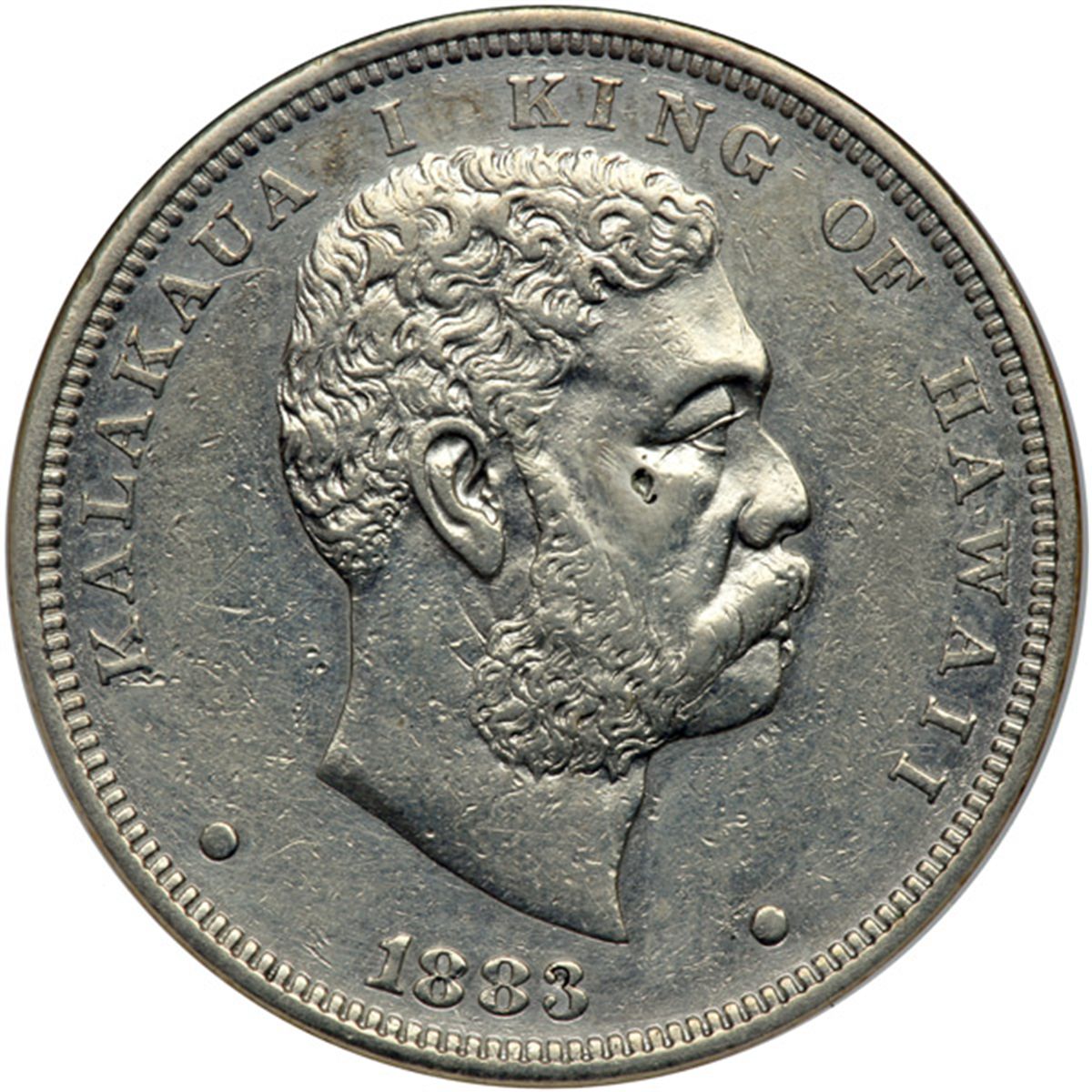 Hawaii. Dollar, 1883. KM-7. Kalakaua I. Damaged (on cheek) and cleaned. ANACS graded AU Details, VF-30, Net.
