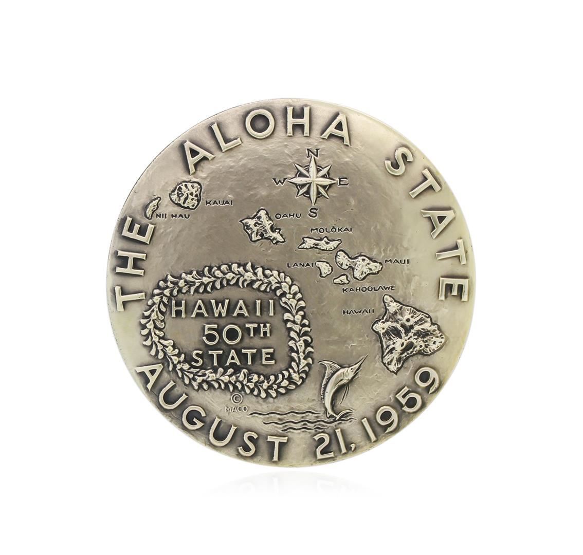 One Hawaii Statehood Commemorative Silver Medallion August 21, 1959.