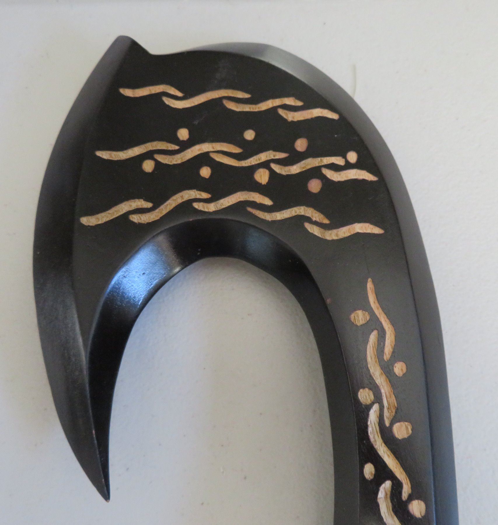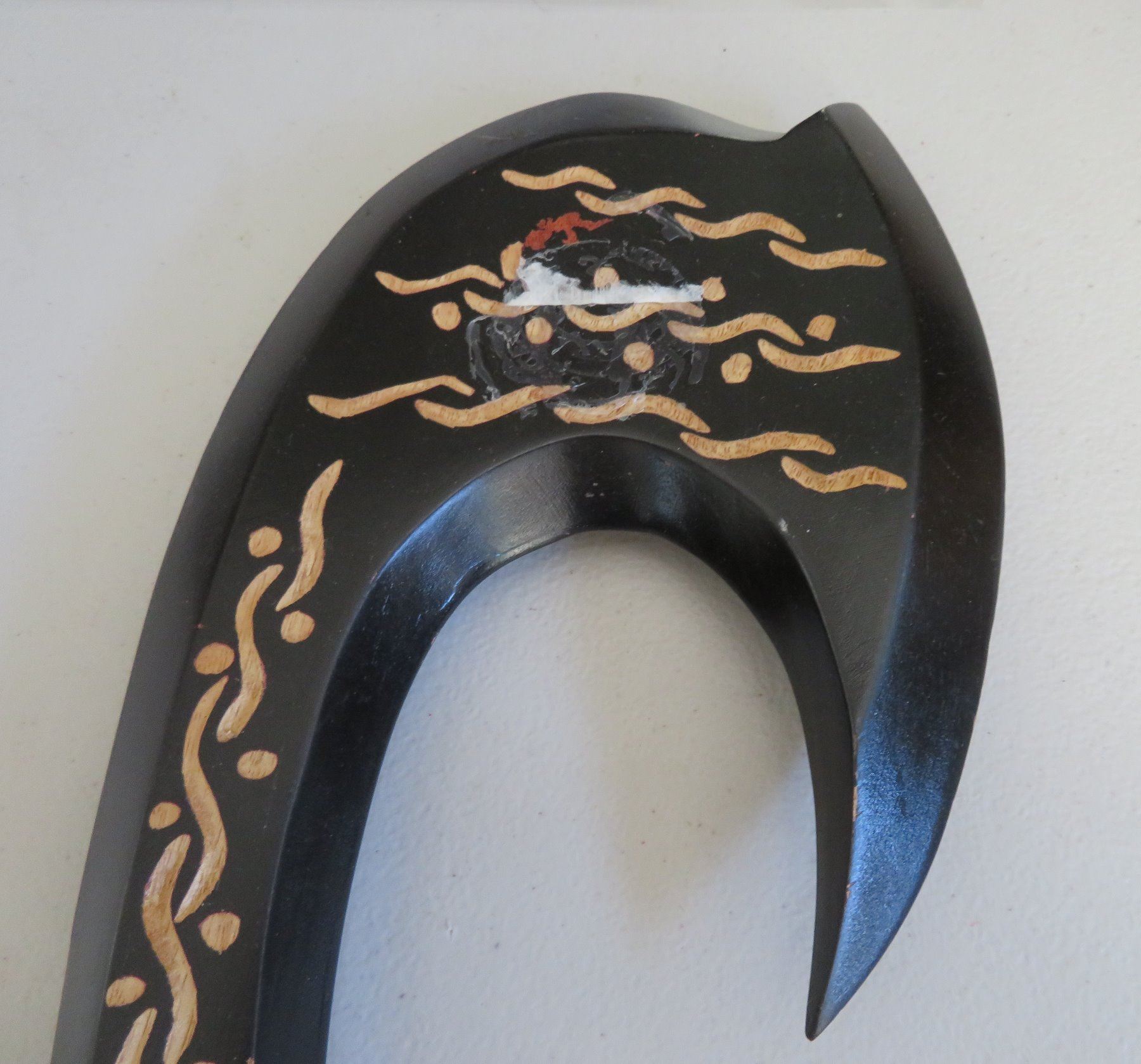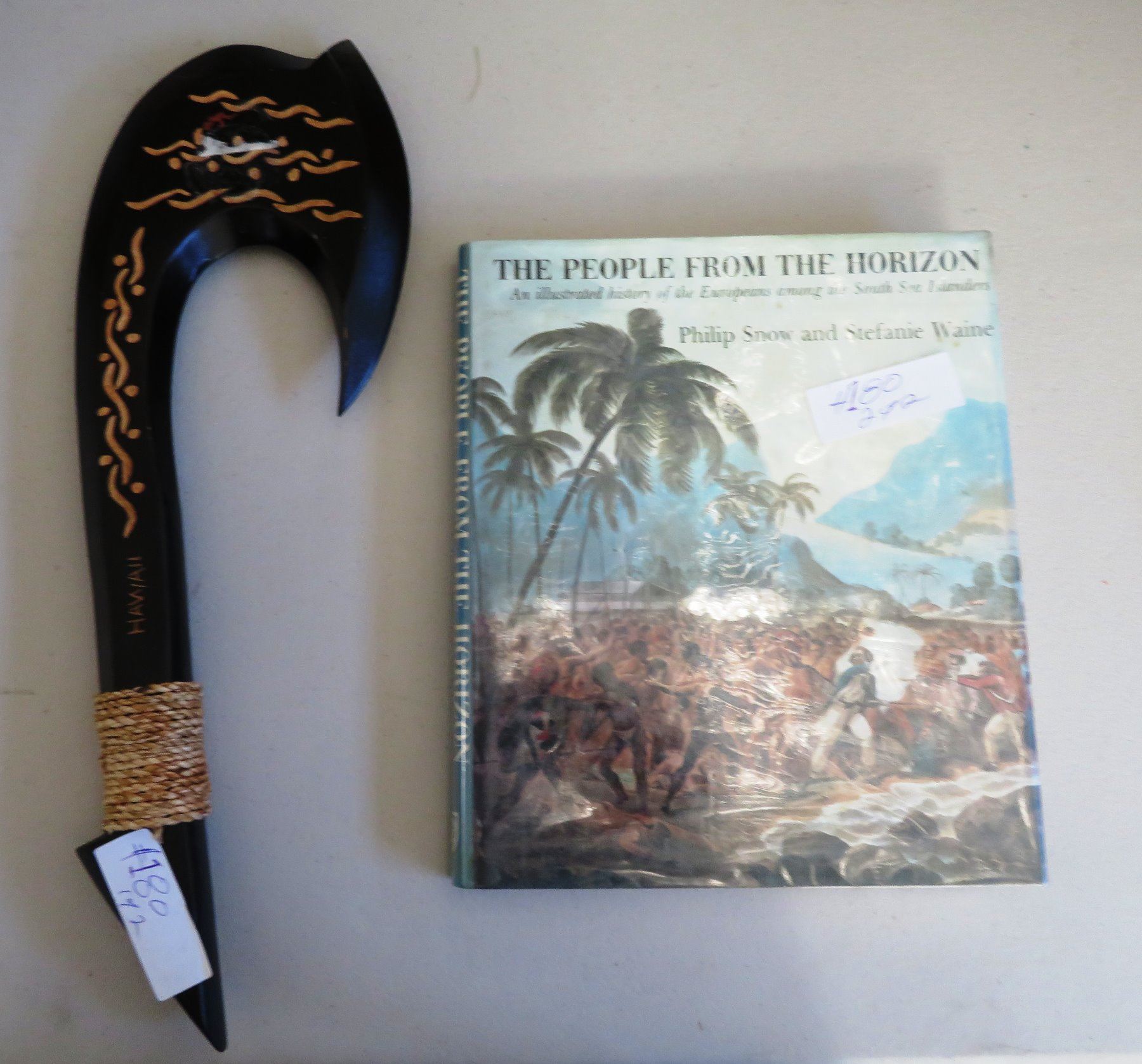 Hawaiian Club & Book, c. 1950s. Made of wood and paint, the item measures 19" x 6" x 2". Hawaii. Book measures 12" x 9" x 1". Condition: Minor scuffs, see images. Shipping: $40.00 w/insurance and signature,