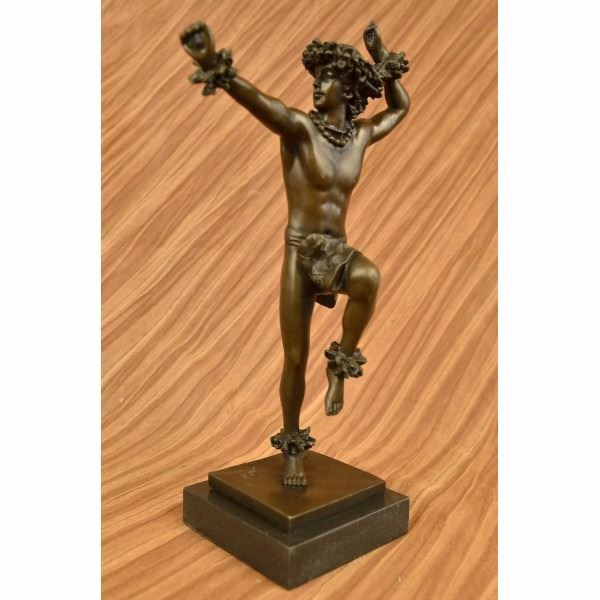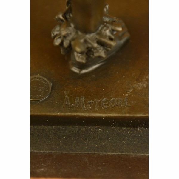 Inspired by the Islands and modeled after local Hula Dancers. These exquisite works of art are the perfect addition to any home. Each piece is made from a 100% Real bronze and is signed Moreau. Stunning detail captures the true essence of the art of ancient hula movements. Accented with color and intricate detailing. Truly an heirloom piece that can be handed down from generation to generation. Condition: This sculpture is in perfect condition. Bronze Dimensions with Marble Base:Height 15" x Width 8" Marble Dimensions: 5" X 5". Height without base: 14" Weight : 9 LBS Inventory : 19DS5255091
