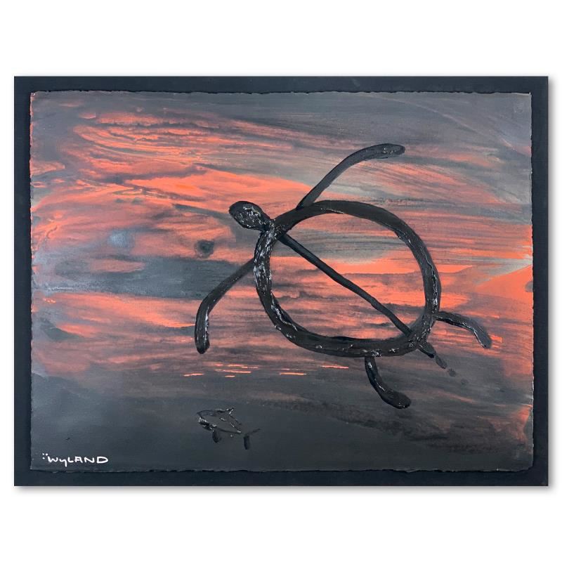 "Hawaiian Petroglyph" is an original watercolor painting on deckle edge paper by Wyland, hand signed by the artist. This piece comes mounted to board. Includes Letter of Authenticity. Measures approx. 32.5" x 25" (matting), 30" x 23" (image).