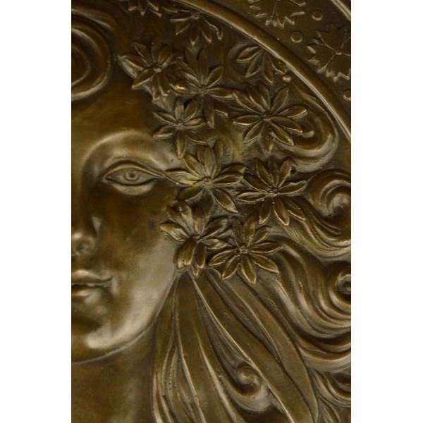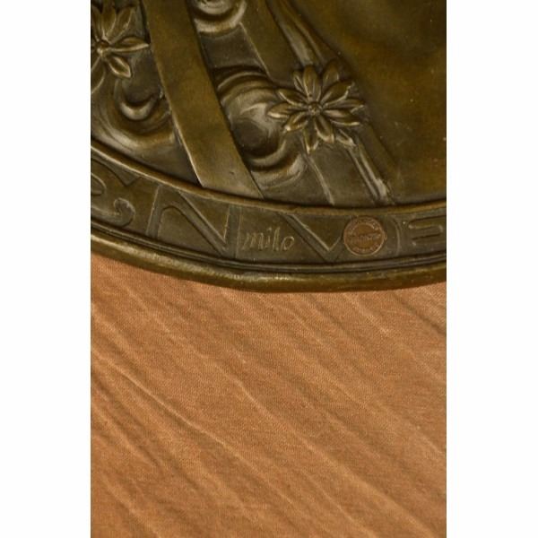 This medallion wall piece features the profile of a beautifulHawaiianPrincess. Her long hair brushes past her shoulders. Her head has a simple headpiece that shows on the side. The about 12 inch diameter is just the right size to make it a focal point or an addition to a wonderful collection of wall sculptures. The sculpture was created using the lost wax method. It is signedMilo. Condition : This sculpture is in perfect condition. Bronze Dimensions :Height 12" x Width 12" Weight : 6 LBS Inventory 49Y10084394