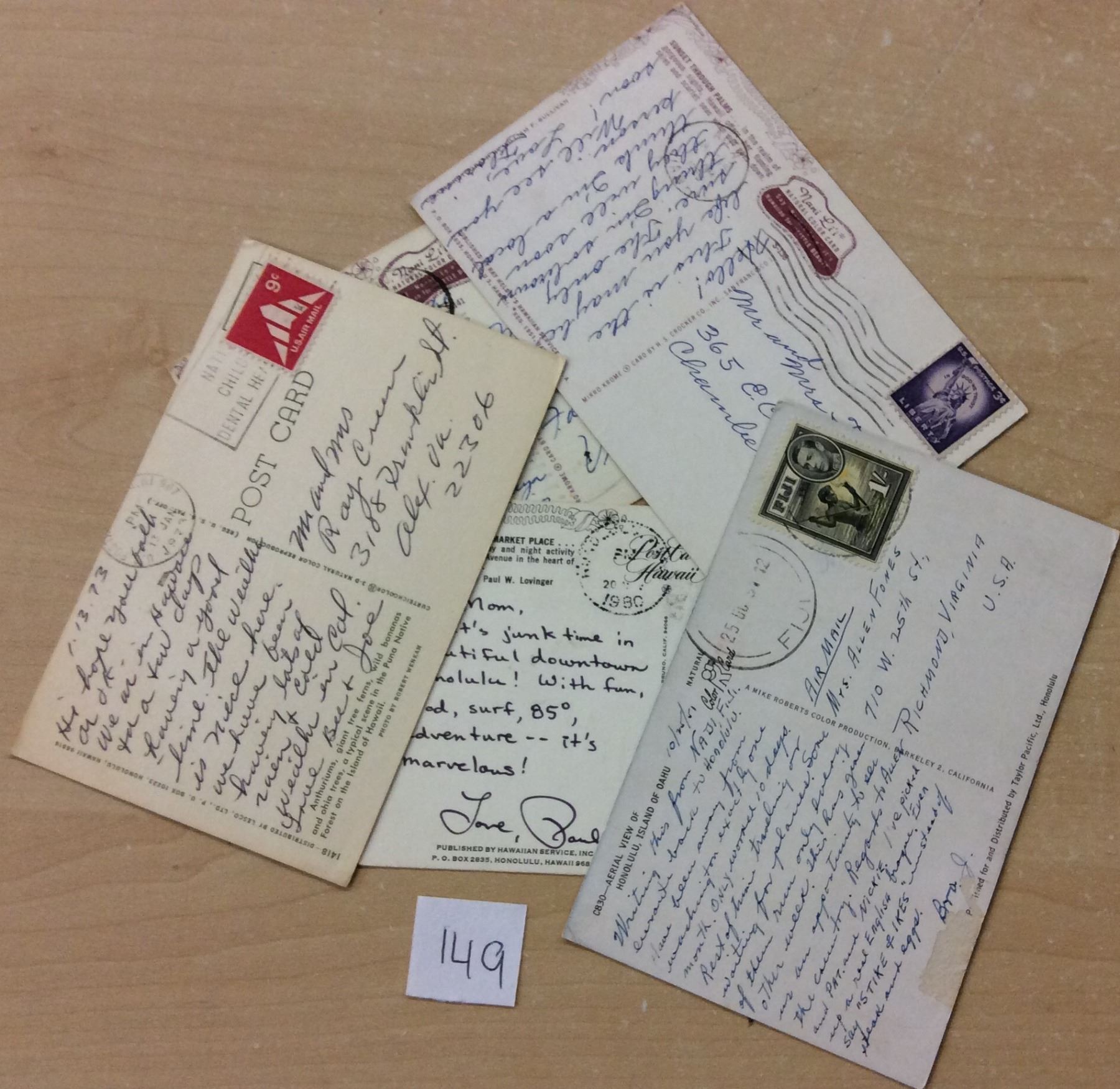 Hawaiian Vintage Postcards with Messages Mailed to Virginia Group of 5 Cards