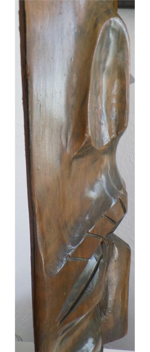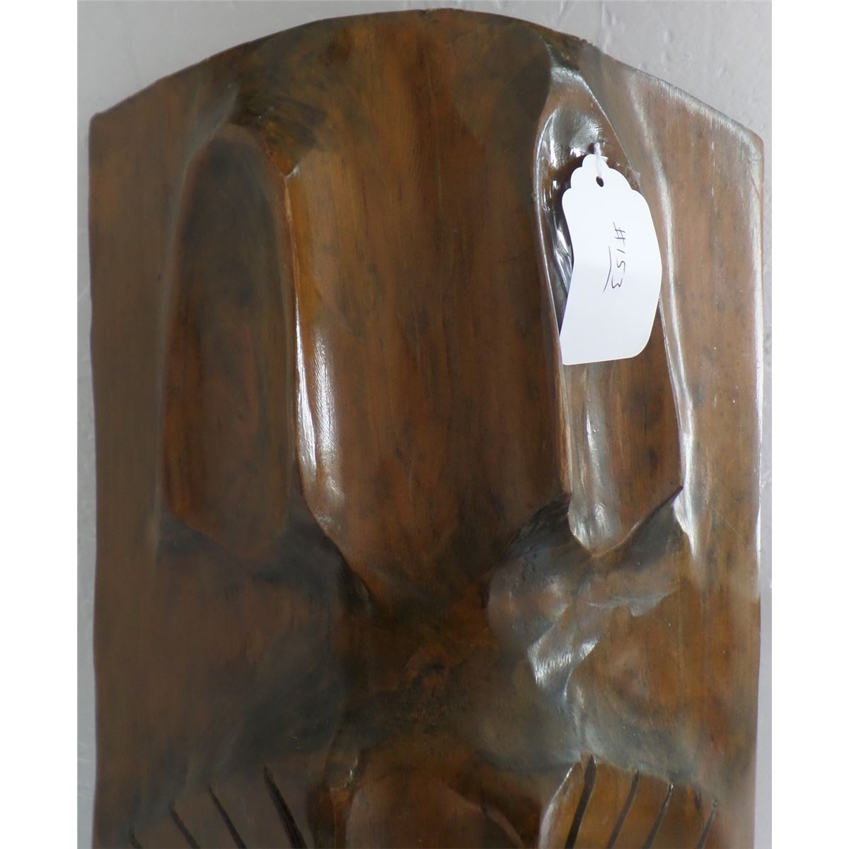 1940's Hawaiian Wood Mask made from wood and lacquer with wire hanger. The mask is very large measuring 26 x 11 x 5 inches. Very nice condition. Shipping $20