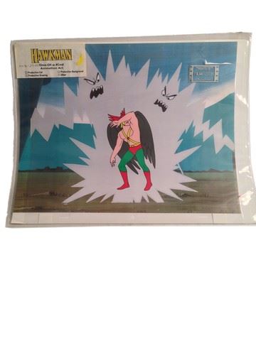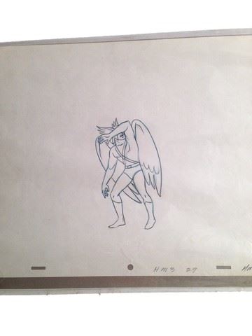 "Hawk Man", original handpainted production cel with sketches of Hawk Man(14x11)