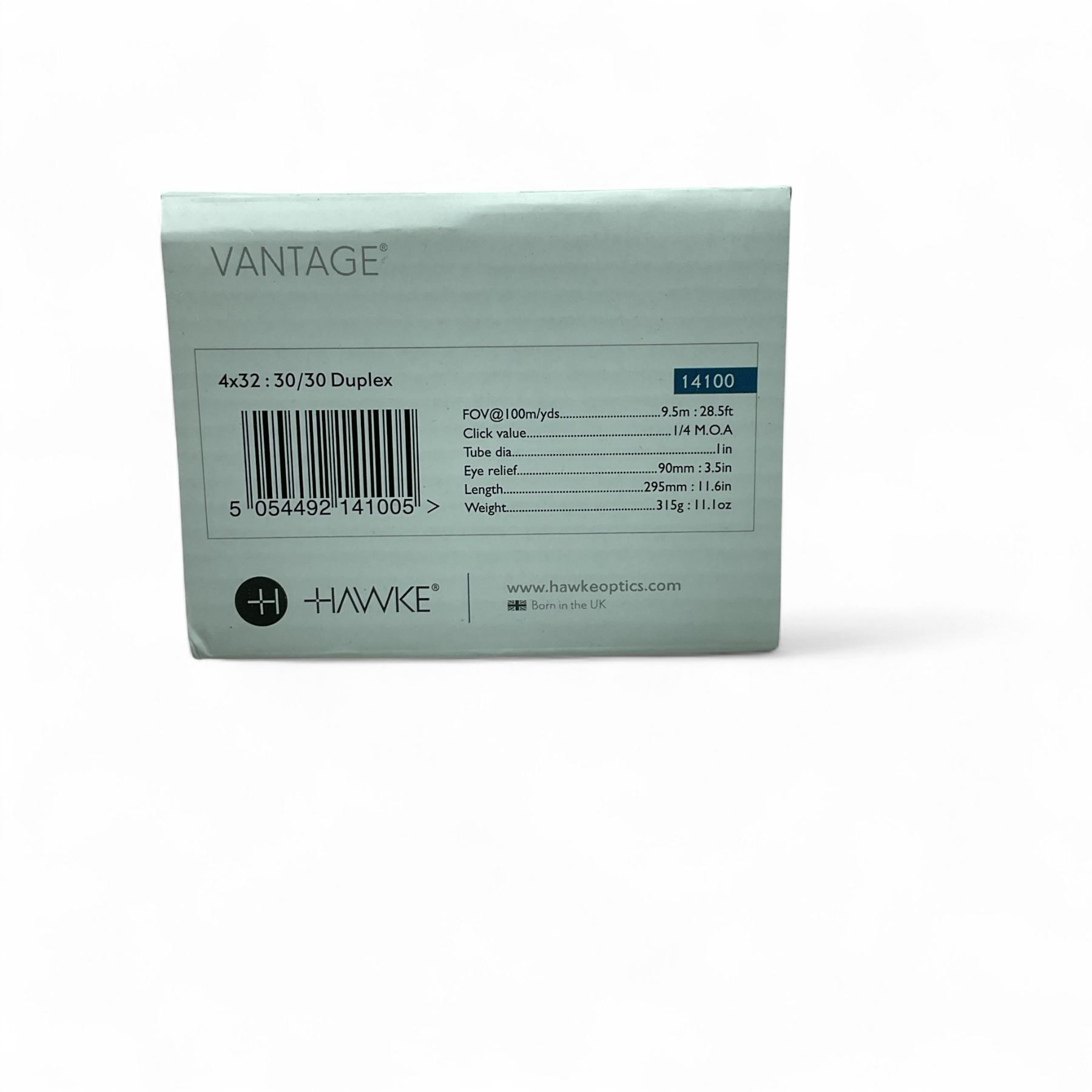 Hawke Vantage 4x32 Scope, 30/30 Duplex Reticle, 1 Inch Tube, New