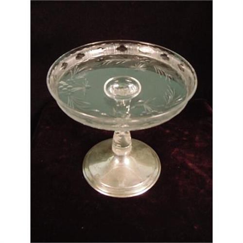 6 inch Tall ** 6 1/2 inch Diameter Bowl ** Intaglio Flower Spray in Bowl ** Bowl has a 3/4 inch Lip with Intaglio Flowers Around ** Punte Stem on a Sterling Foot ** Marked Hawkes, Sterling & 48 Pwts ** Quite Rare ** No Chips or Cracks in Glass or Silver
