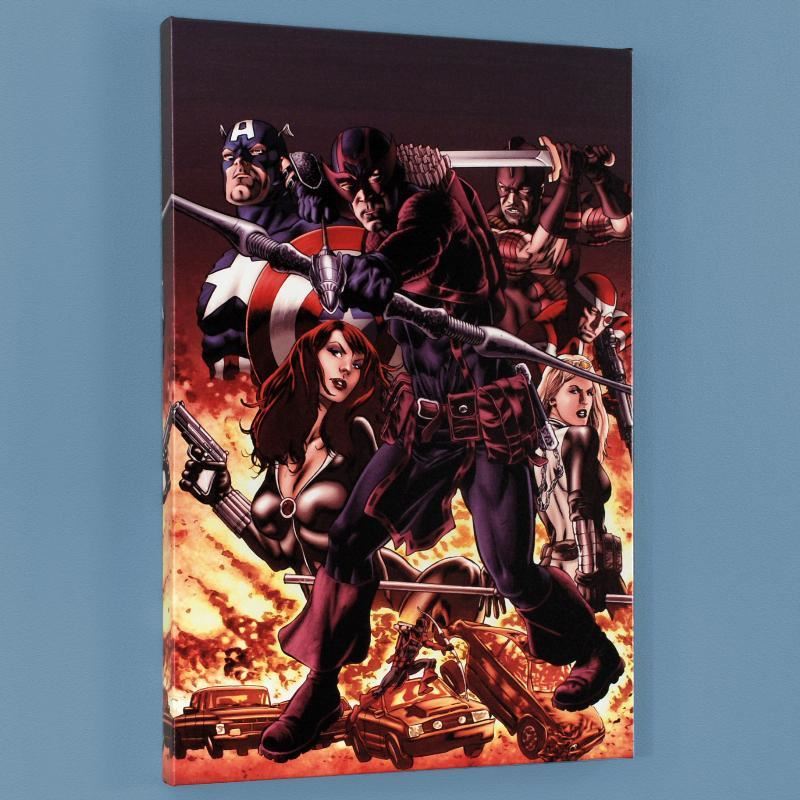 A piece of comic book history, this limited edition, from original art by Mike Perkins, depicts the classic characters Hawkeye, Captain America, and Black Widow. Beginning with Marvel UK, Mike Perkins now regularly creates art for Spider-Man, Fantastic Four, X-Men, and Captain America. "Hawkeye: Blind Spot #1" is a limited edition numbered giclee on canvas by Mike Perkins presented by Marvel Comics. This piece comes gallery wrapped. Includes Certificate of Authenticity! Measures approx. 18" x 27" (image).