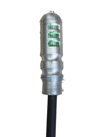 Marvel Films - Hawkeye production made trick arrow (23" long). Made with a real arrow base, painted black and custom rigged screw on, silver painted, resin tip with green painted lines to appear either as lights or with acid inside.