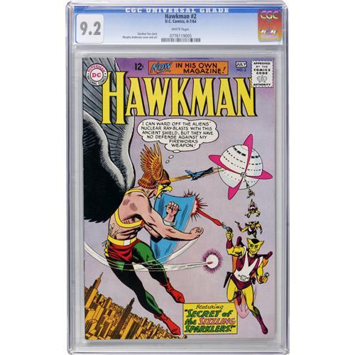 <B>Hawkman #2 (DC, 1964) CGC NM- 9.2 White pages.</B></I> Murphy Anderson provided the cover and interior art here. Overstreet 2006 NM- 9.2 value = $375. CGC census 3/07: 8 in 9.2, 5 higher.<BR><BR><b>Shipping:</b> Comics - Slabbed (certified) (<a target="_blank" href="http://www.heritageauctions.com/common/shipping.php">view shipping information</a>)