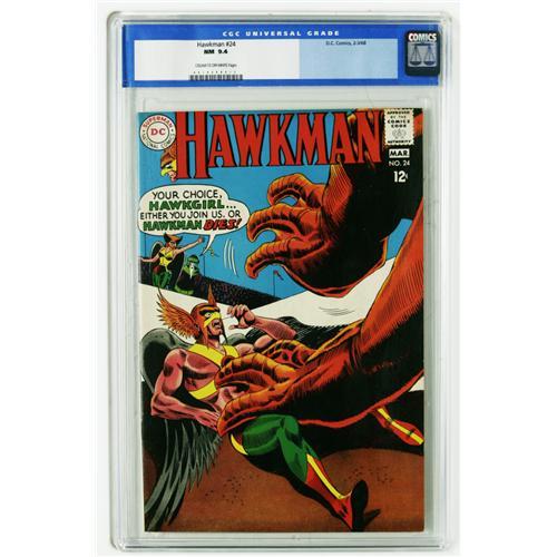 <B>Hawkman #24 (DC, 1968) CGC NM 9.4 Cream to off-white pages.</B></I> Dick Dillin cover and art. Overstreet 2006 NM- 9.2 value = $65. CGC census 4/06: 7 in 9.4, 1 higher.