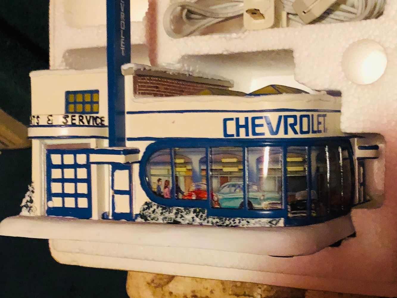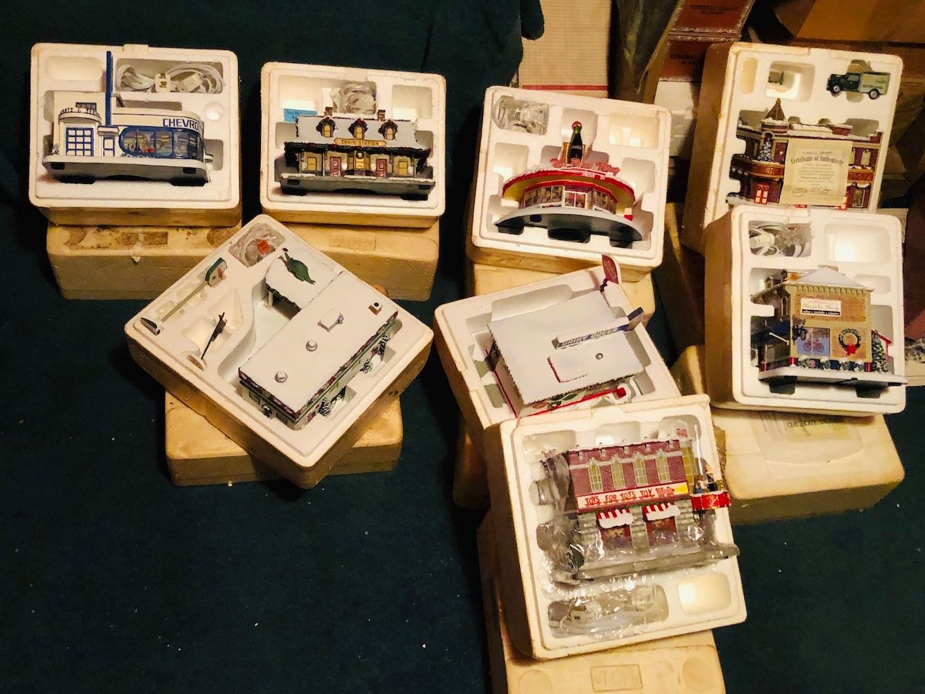 8 Hawthorne Village Happy Memories Village including Coca Cola Drive-In, Chevrolet Dealership, Sinclair, F. W. Woolworth Co., Schwinn Bicycle Shop, etc. All in original packaging with COA's.