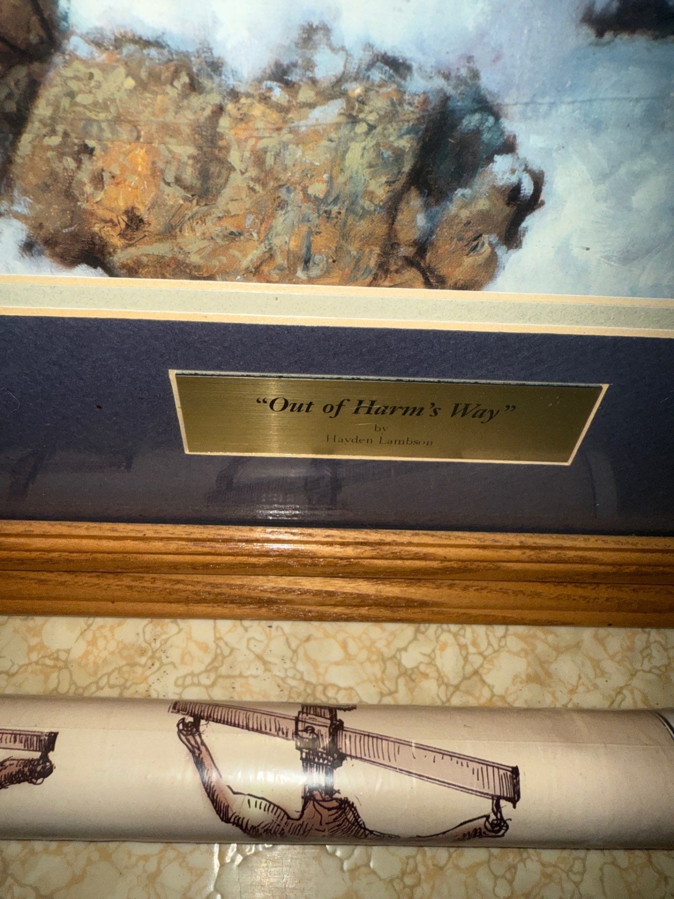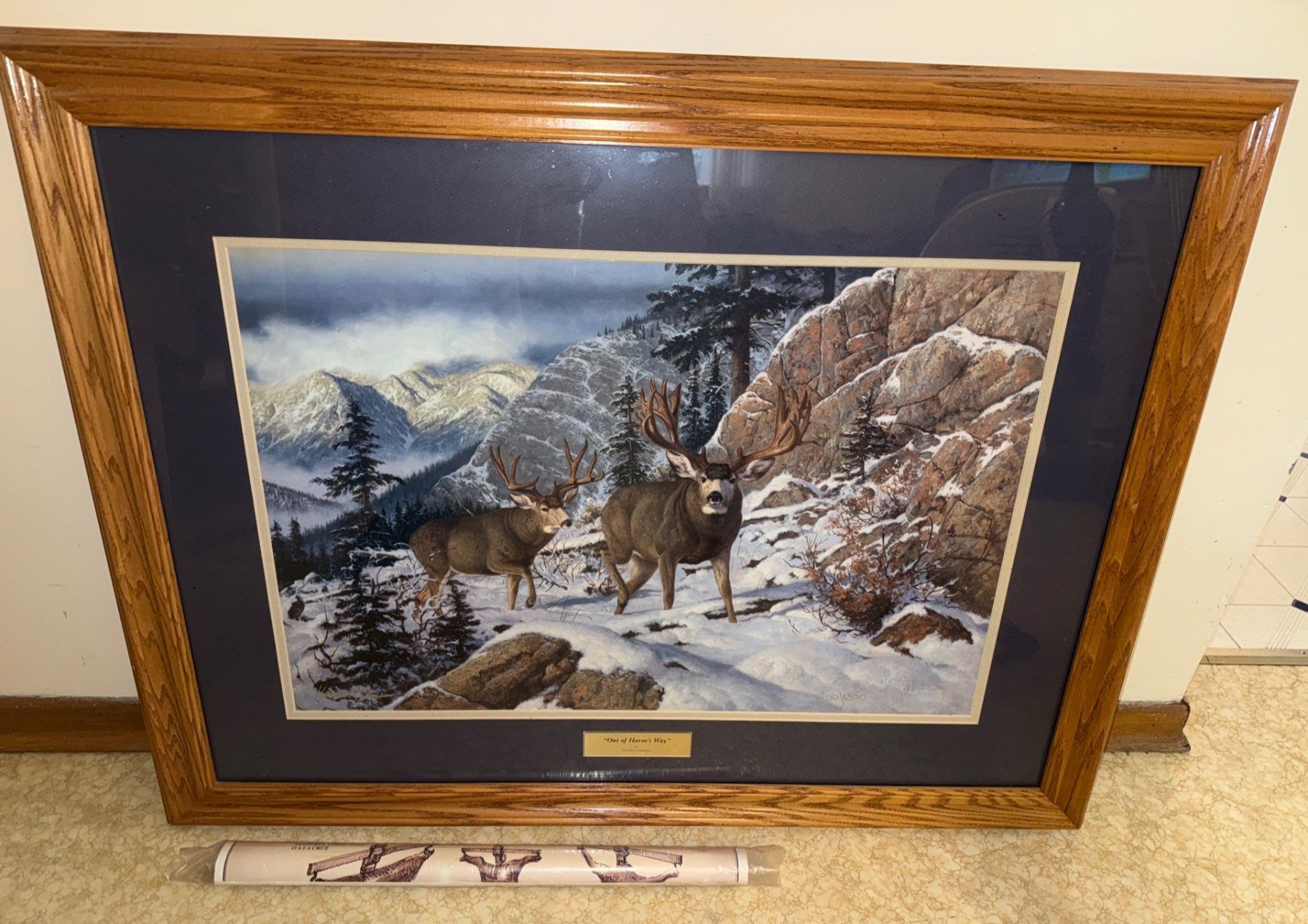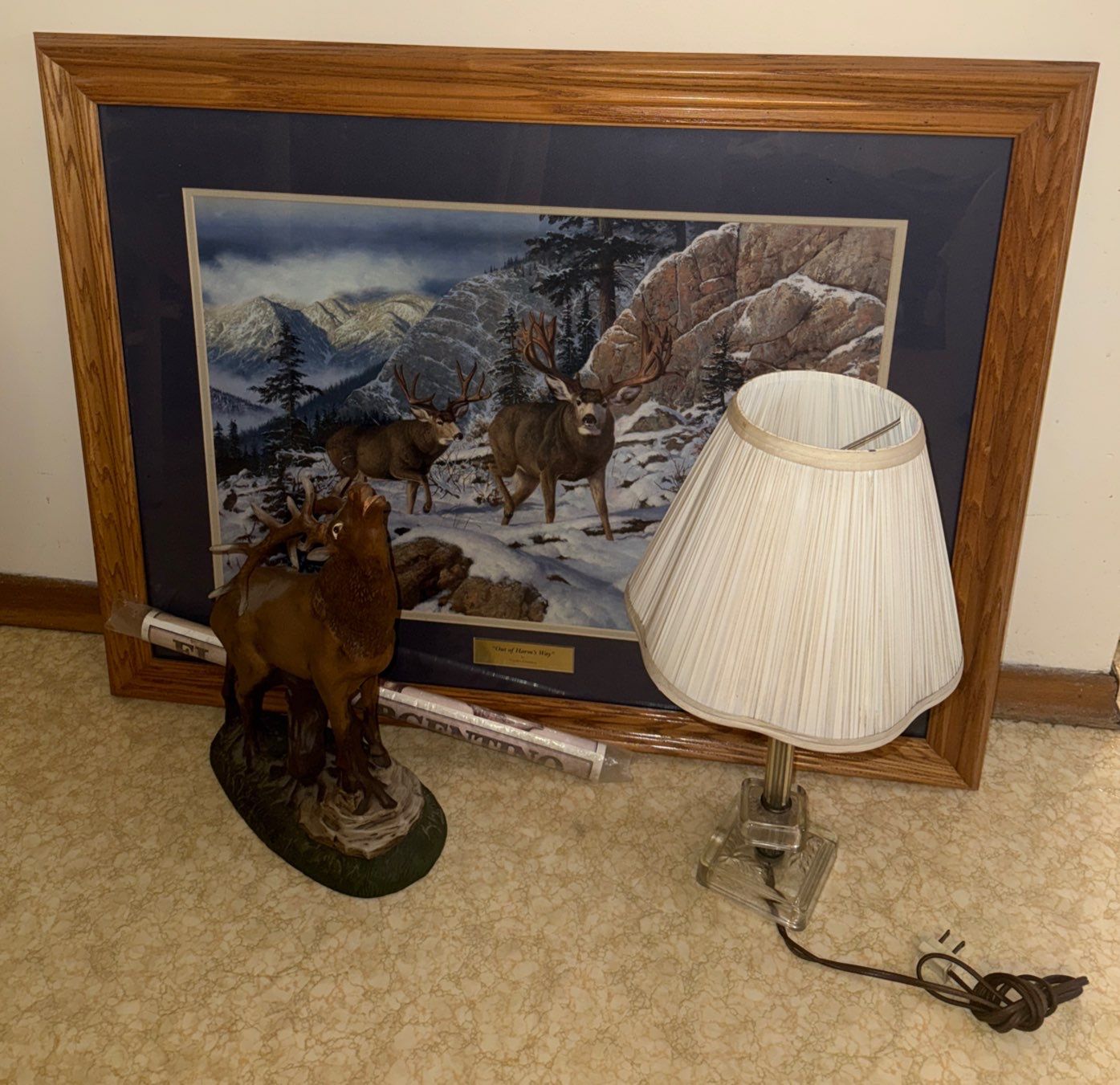 Hayden Lambson's "Out of Harm's Way" Framed Print, Lamp & Deer Statue