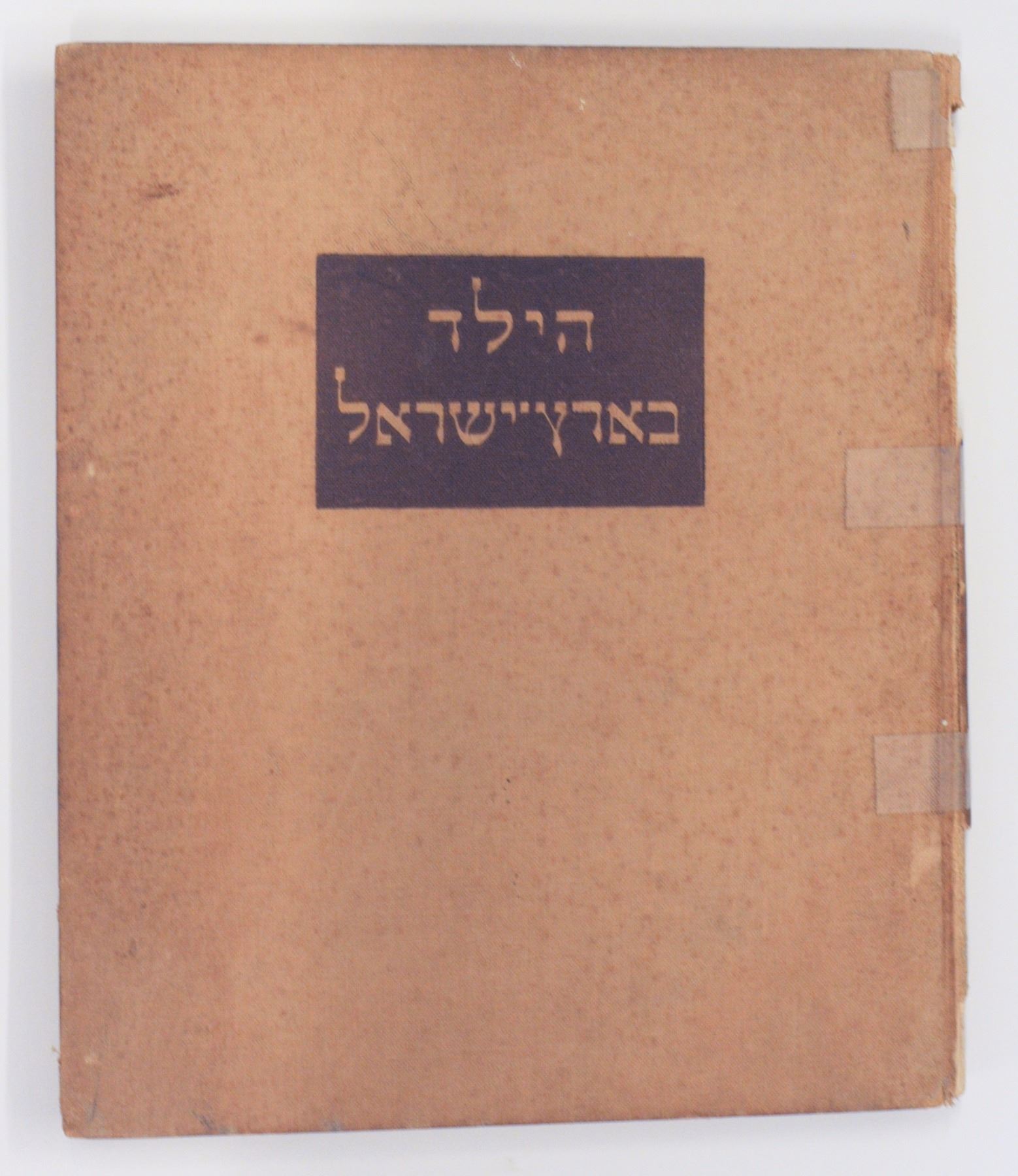 Hayeled B’eretz Israel, a selection of children's works, ages 1.5 to 13.5, oral, painted and played works, selected and paginated by Gitl Meisel, published by the author, 1935, reasonable condition: back cover is damaged, one glued piece (scotch tape), foxing, interior is in good condition: one loose page, some foxing.