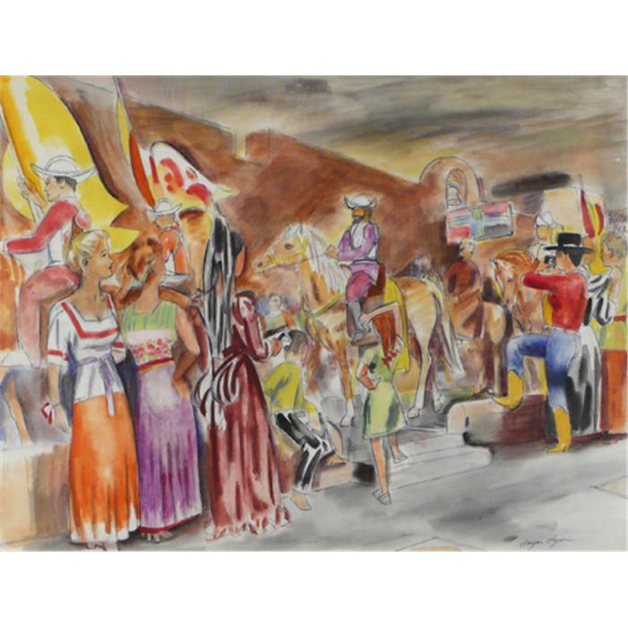 Hayes Lyon (1909-1987) Watercolor Parade Signed lower right 19" x 25"