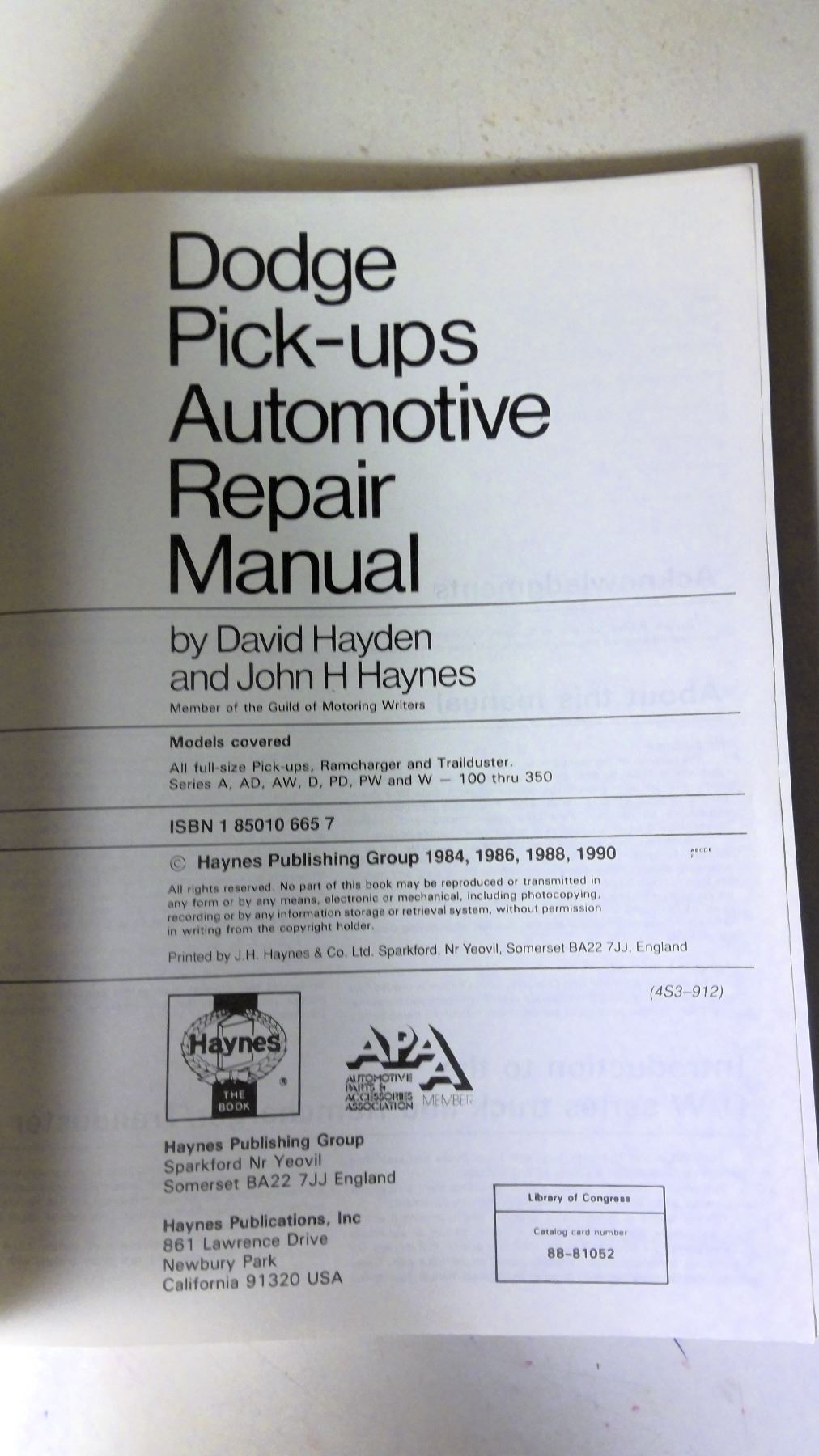 Haynes Dodge Pickups 1974-1990 #912 Manual