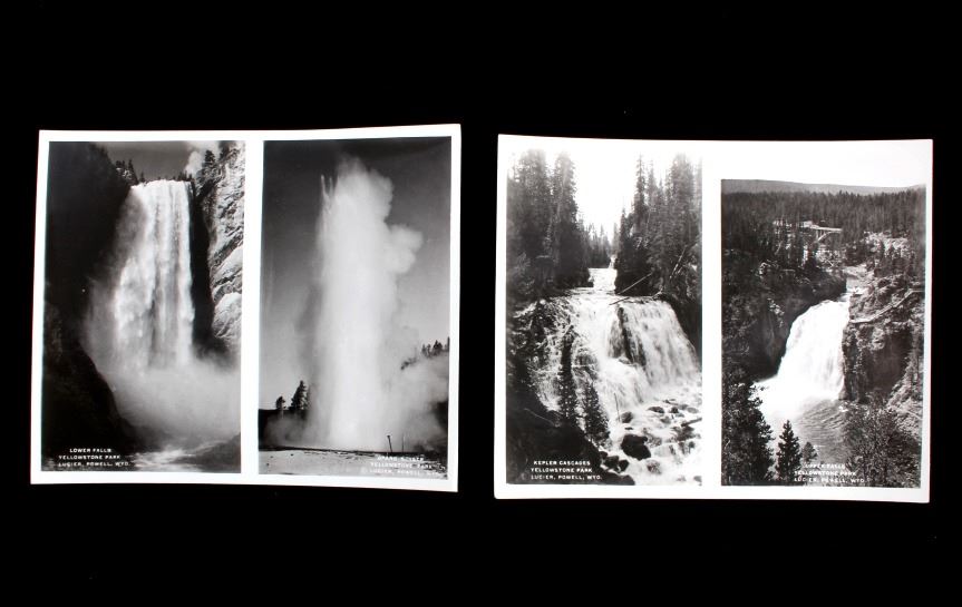 This is a collection of Haynes and Lucier photographs from Yellowstone National Park. The collection includes 10 photographs by F. Jay Haynes that come in the original Haynes Studio box. There are also 28 photographs from the lucier studio in Powell, Wyoming. The photographs in the collection are in good overall condition. The Haynes photographs measure 5.5" x 6.5". The Haynes box has moderate damage as shown.
