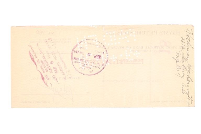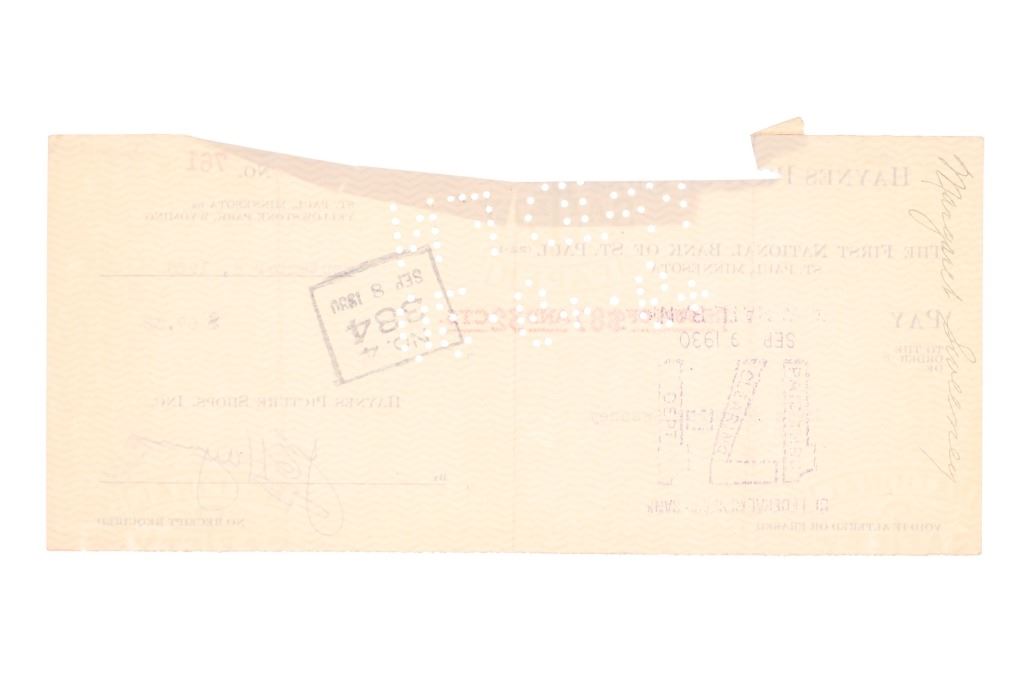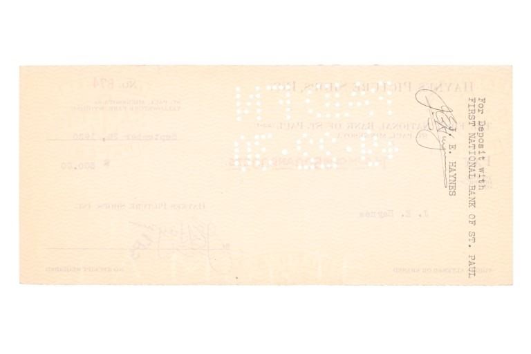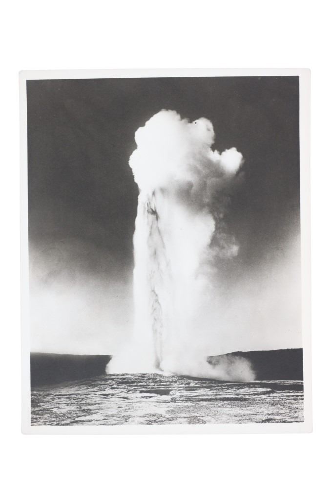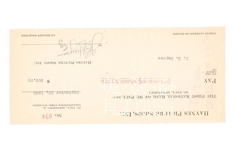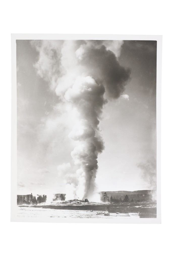 For your consideration are Original F. J. Haynes photographs and ephemera of Yellowstone National Park, circa 1930s. The photographs are are all large format photographs of Yellowstone National Park and are all stamped with the Haynes hallmark. Also included are cancelled checks with Jack Haynes signature and Haynes Store envelopes for Jo Mora maps. Frank Jay Haynes, known as F. Jay or the Professor to almost all who knew him, was a professional photographer, publisher, and entrepreneur from Minnesota who played a major role in documenting through photographs the settlement and early history of the great Northwest. He became both the official photographer of the Northern Pacific Railway and of Yellowstone National Park as well as operating early transportation concessions in the park. His photographs were widely published in articles, journals, and books, and turned into stereogrpahs and postcards in the late 19th and early 20th century. Jack, like his father, was a photographer, and inherited the family business and continued as the official Yellowstone National Park photographer until his death in 1962. In 1921, when Frank died, Jack also inherited the physical studio outside of Yellowstone National Park and Frank’s archive of YNP photo negatives. Jo Mora was one of the foremost pictorial mapmakers of the 20th century, known for depicting places in the West such Yosemite, Yellowstone, and Grand Canyon National Parks; the Monterey Peninsula; San Diego; and Carmel-by-the-Sea. Today his maps are highly prized by collectors, with a Swann Auction Galleries 2023 auction sale for "The Seventeen Mile Drive" Carmel-by-the -Sea over $4500.00. The three (3) photographs are numbered and titled, "10160 Old Faithful Geyser, Sunrise", "13040 Old Faithful Geyser, Yellowstone Park", " 13063 Giant Geyser, Yellowstone Natl. Park". All are also marked, "Haynes Inc." The four (3) envelopes are marked at the top left corner, "Haynes Inc. Yellowstone Park Wyoming". The four (4) cancelled checks are marked, "Haynes Picture Shops, Inc. The First National Bank of St. Paul St. Paul, Minnesota" and dated September 1930. Photographs show good condition overall with little to no wear present and no signs of obvious damage present. The photos each measure 8"W x 10"L approximately. Envelopes are also in good condition with no wear, age tanning. Each measures 8.5"W x 11.25"L. Cancelled checks measure 3.75"W x 8.5"L. Collective weight is U6.