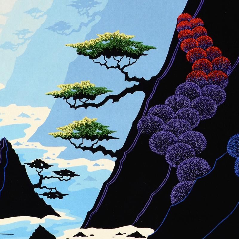 Larissa Holt, a student of distinguished artist Eyvind Earle (1916-2000), uses bold colors and breathtaking scenery to create images of Nature in her own unique style. "Haystack Isle" is a limited edition giclee on stretched canvas by Holt, numbered and bearing Holt's authorized signature. This piece comes gallery wrapped. Includes Certificate of Authenticity! Measures approx. 12.5" x 10" x 1.5" (image).