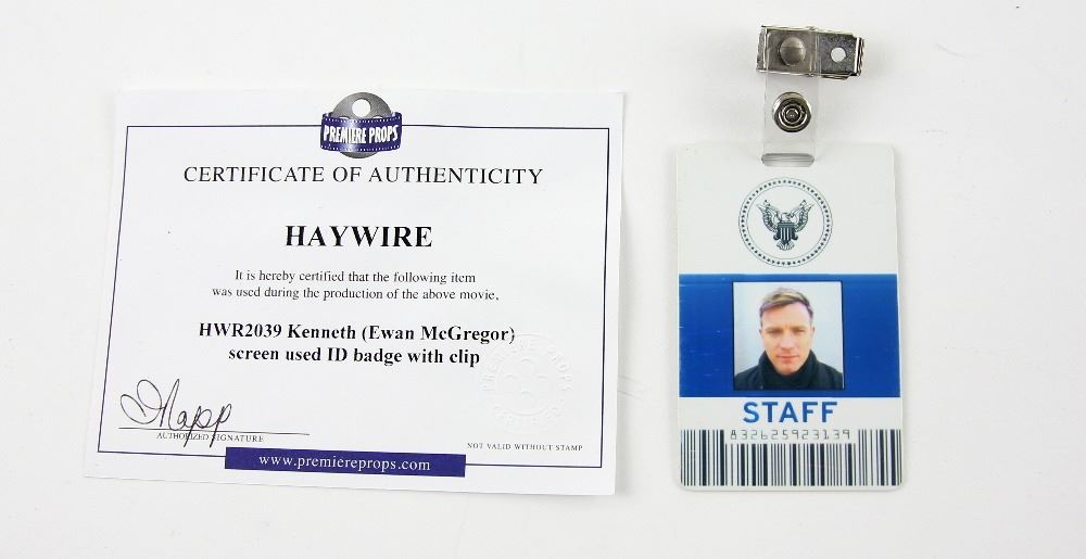 Haywire (2012) Kenneth (Ewan McGregor) Screen Used ID badge with clip.Provenance: With certificate of authenticity.