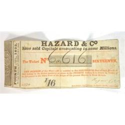 Hazard & Co Royal Exchange lottery ticket dated 1822…