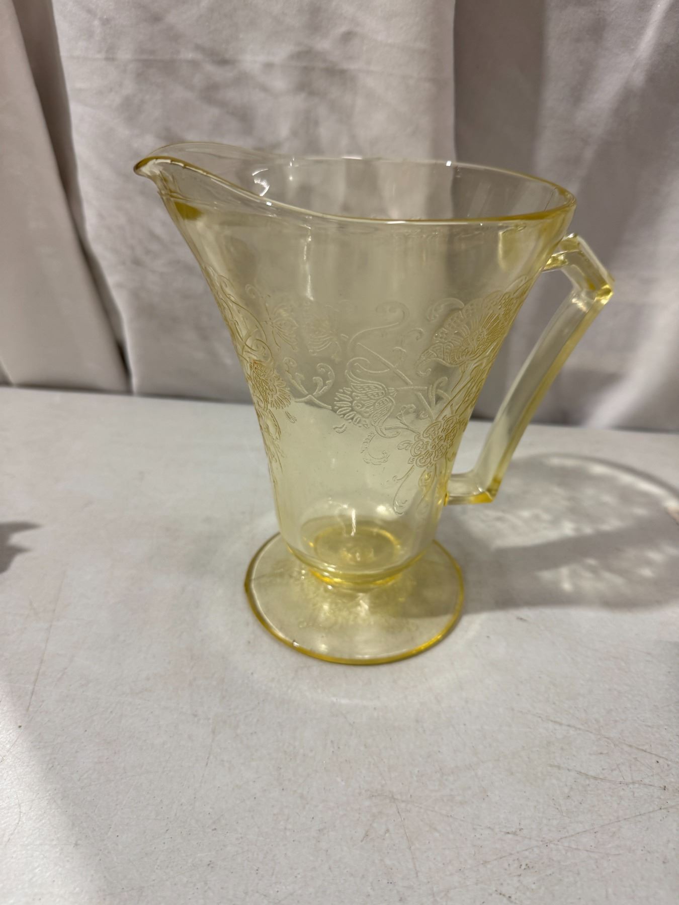 Hazel Atlas Yellow Florentine No. 2 Depression Glass Pitcher.