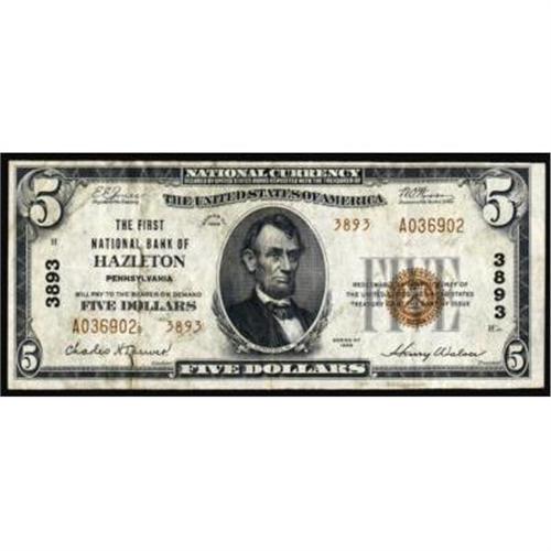 Hazleton, PA. $5 1929 Ty. 2. The FNB. Ch #3893