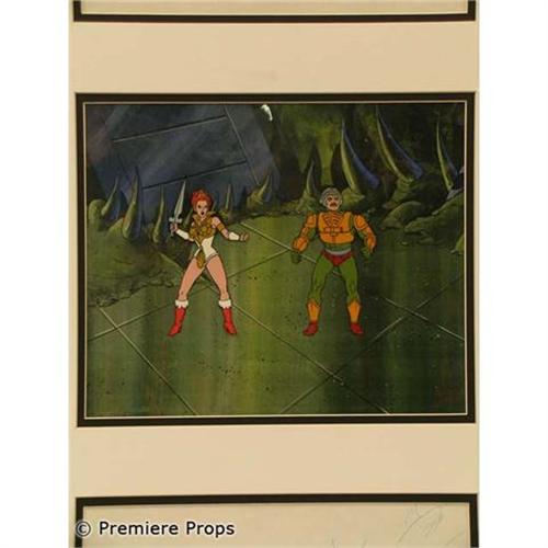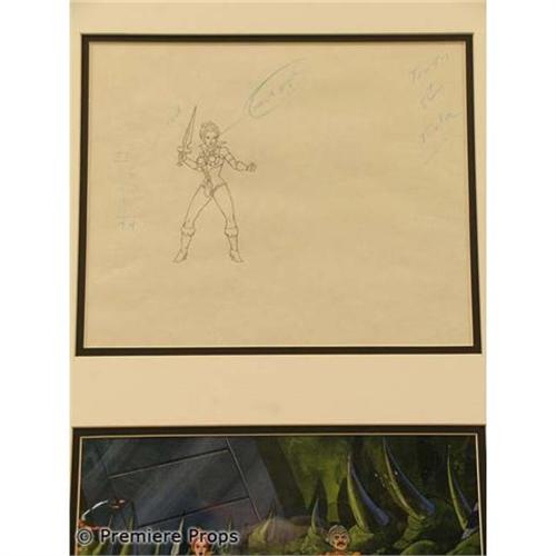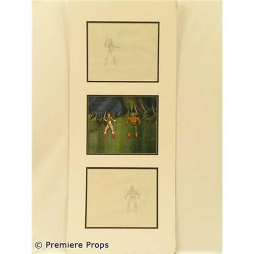 He-Man, Teela Animation Cels Includes 1 cell and 2 hand drawn sketches /Filmation Studios / (matted ~ 40" x 15") (FLM3090)