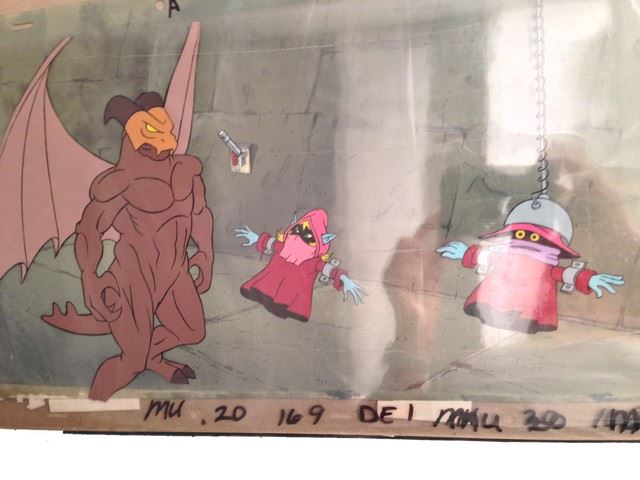 "He-Man" Animation Pan (featuring "Orko" and "Dru Elle" / includes assorted layout drawings and character sketches/ rare! / Filmation Studios / 1983 / 23" x 10.5")