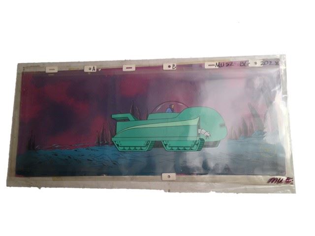 "He-Man" Animation Pan (featuring "Skeletor" in his battle tank / includes original hand painted background / 1983 / Filmation Studios / 25" x 10.5")
